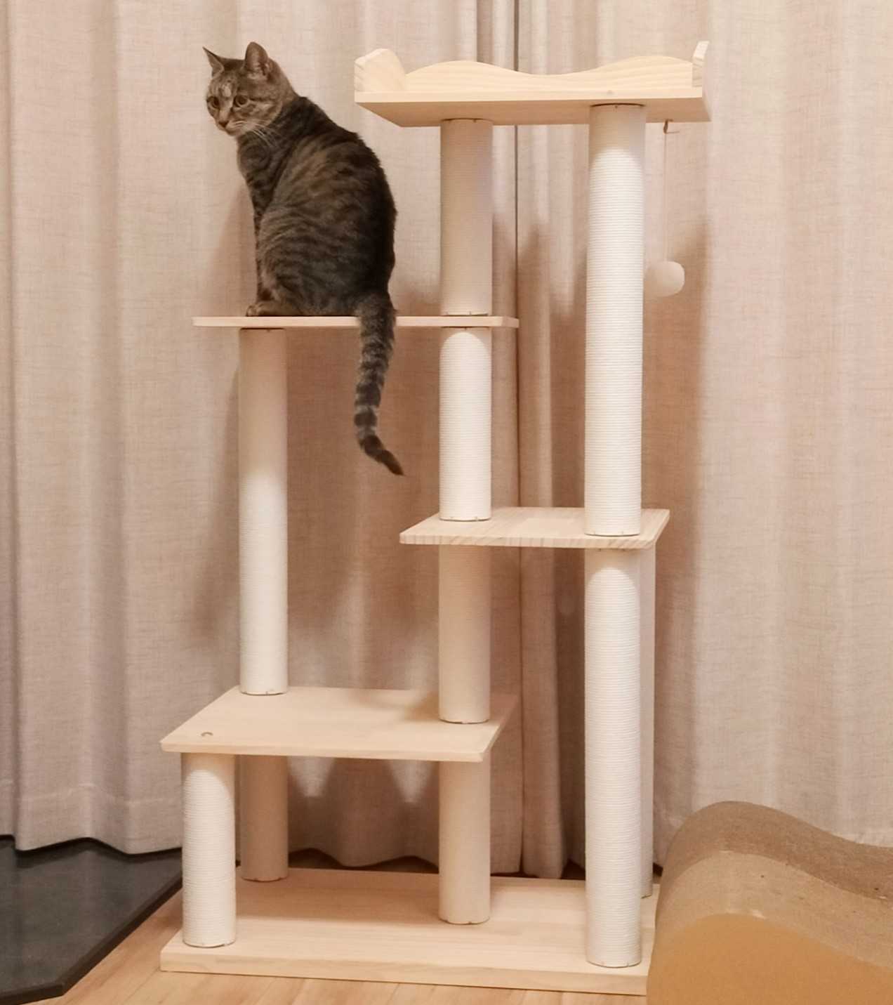 キャットタワー 木登り 木製 スリム 大型猫 据え置き 天然木 おしゃれ 多頭飼...