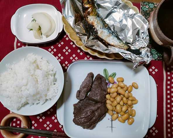 こんにちは^^今日は出かける予定は入れていなかったのだけれど図書館への本の返却がありましたぁ・・・((+_+))お子さんたちが沢山来られてて賑やか^^子供のころから本に親しむのはとても良い事だと思います。帰ってからのお昼^^今日は肉がありました^^大豆もあり!まず肉を塩コショウで焼き焼き その油で大豆(水煮)を醤油で味付けして炒めました。大根のぬかづけホッカホカご飯^^昨日の残り物のイワシの焼き焼き^^今日も完食です^^ごちそう様でした<m(__)m>