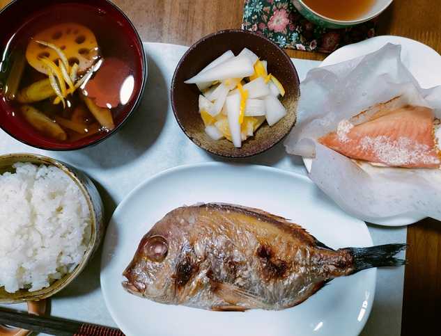 おはようございます^^本日もよろしくお願いします<m(__)m>息子も本日明日からの仕事があるため帰っていきました。少しのお休みのように感じています。来るのは良いのだけれど行くのはね、、サミシイ感はぬぐえませんね、、でも元気でやってくれれば!って思う次第です^^このお正月四毒抜きの料理?(料理と言ってほしいくらいのものです)。息子には ちょっといつもと違ってごめんね^^;で済みました^^振り返ってみれば・・・魚や肉はしっかりといただきましたがお餅はパスしました。お雑煮がない。。。。ご飯とおつゆになりました。お味は雑煮風に^^でもまぁこんなものでしょ^^で割り切り!!!挨拶は豪華に!^^でした。今日も一日がんばりましょ!みなさんにとりましても佳き日になりますように~今年も明日から仕事開始ですね^^これからもよろしくお願いいたします。<m(__)m> お汁は根っこ野菜と白菜。^^