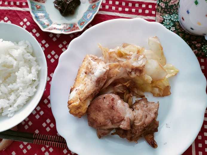こんにちは^^今 島根地方での地震の知らせが入ってきました。なにとぞ 被害の少ない事祈るばかりです。地震 絶え間なくありますね。。実は 我が家の地震保険というか、、、火災保険が今年で切れます。家を建てた時に入ったもの。その時には15年という期間もありでして 最長30年契約なんていうのもありました。が今は5年?が最長なんだとか。掛け金もお高くなっています。ハウスメーカーさんにお任せでいいのかな?って思っていますがどうなんだろ?とも思います。さて今日のお昼もよしりんの四毒抜き食事に挑戦です。今日は生姜焼き用の豚肉を塩コショウで焼き焼き勿論油は豚肉ちゃんから出てきた物のみ^^キャベツの蒸し焼き ゆでたまご自家製のぬか漬けの大根ほっかほかのご飯^^となりました。今日も満腹^^ごちそうさまでした<m(__)m>