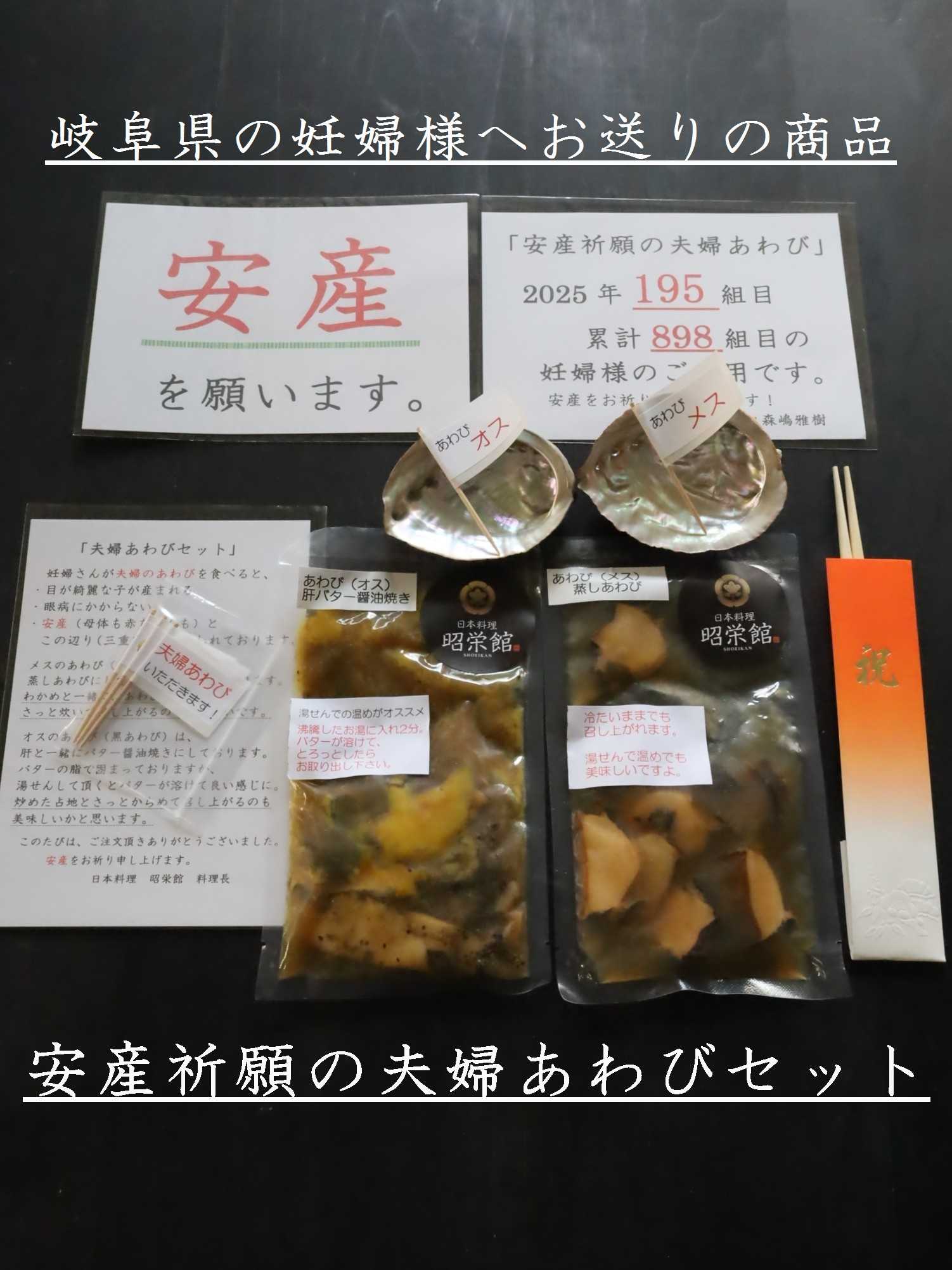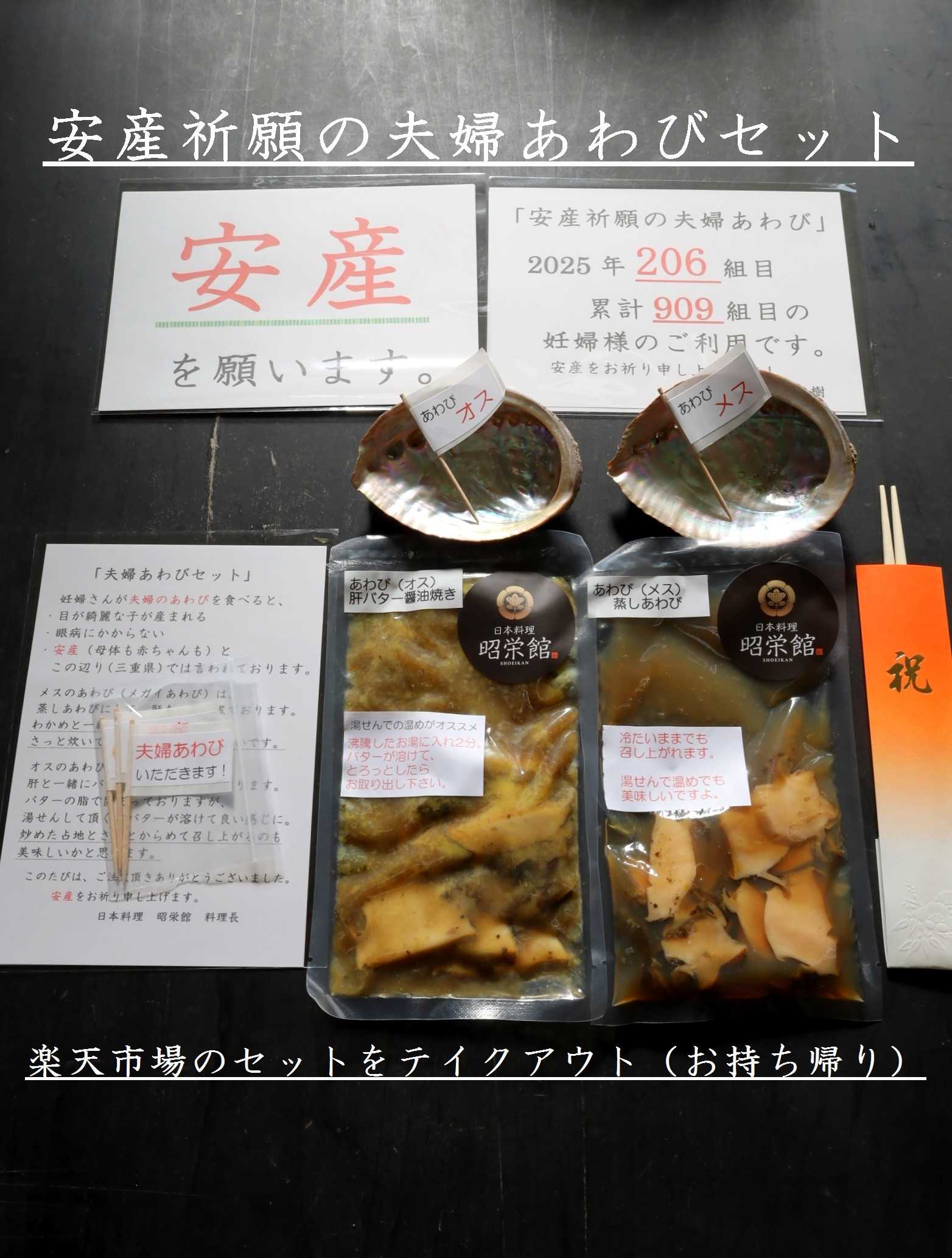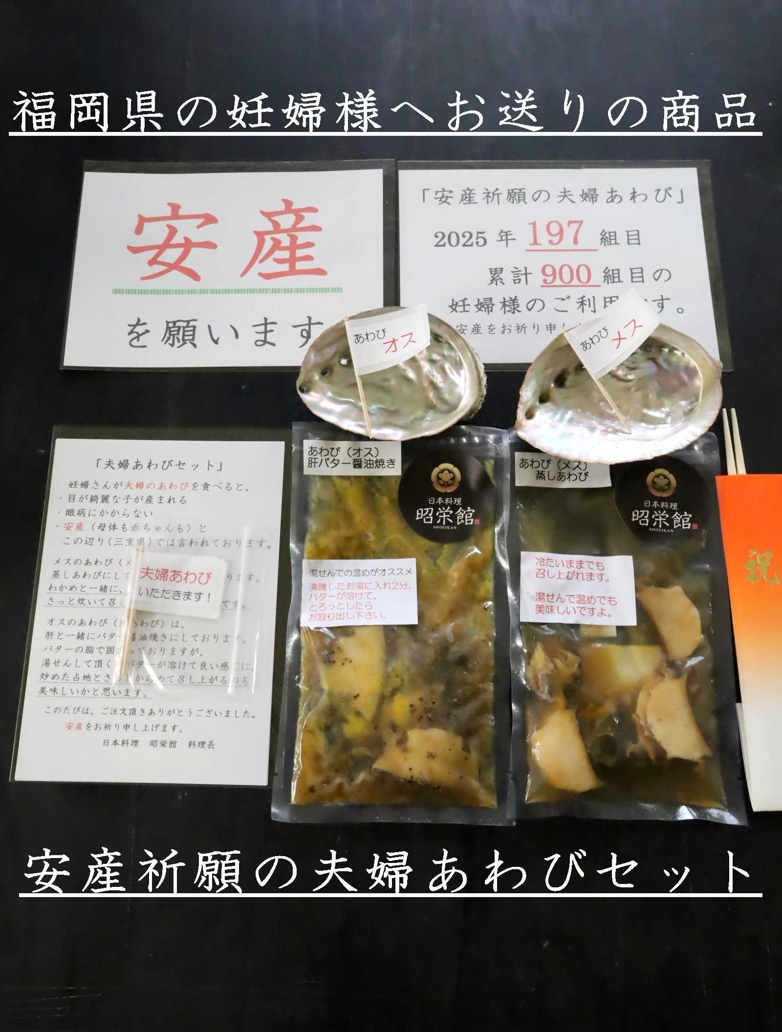 上の子に続いてお二人目も安産決定!安産祈願の夫婦あわび料理 本日…