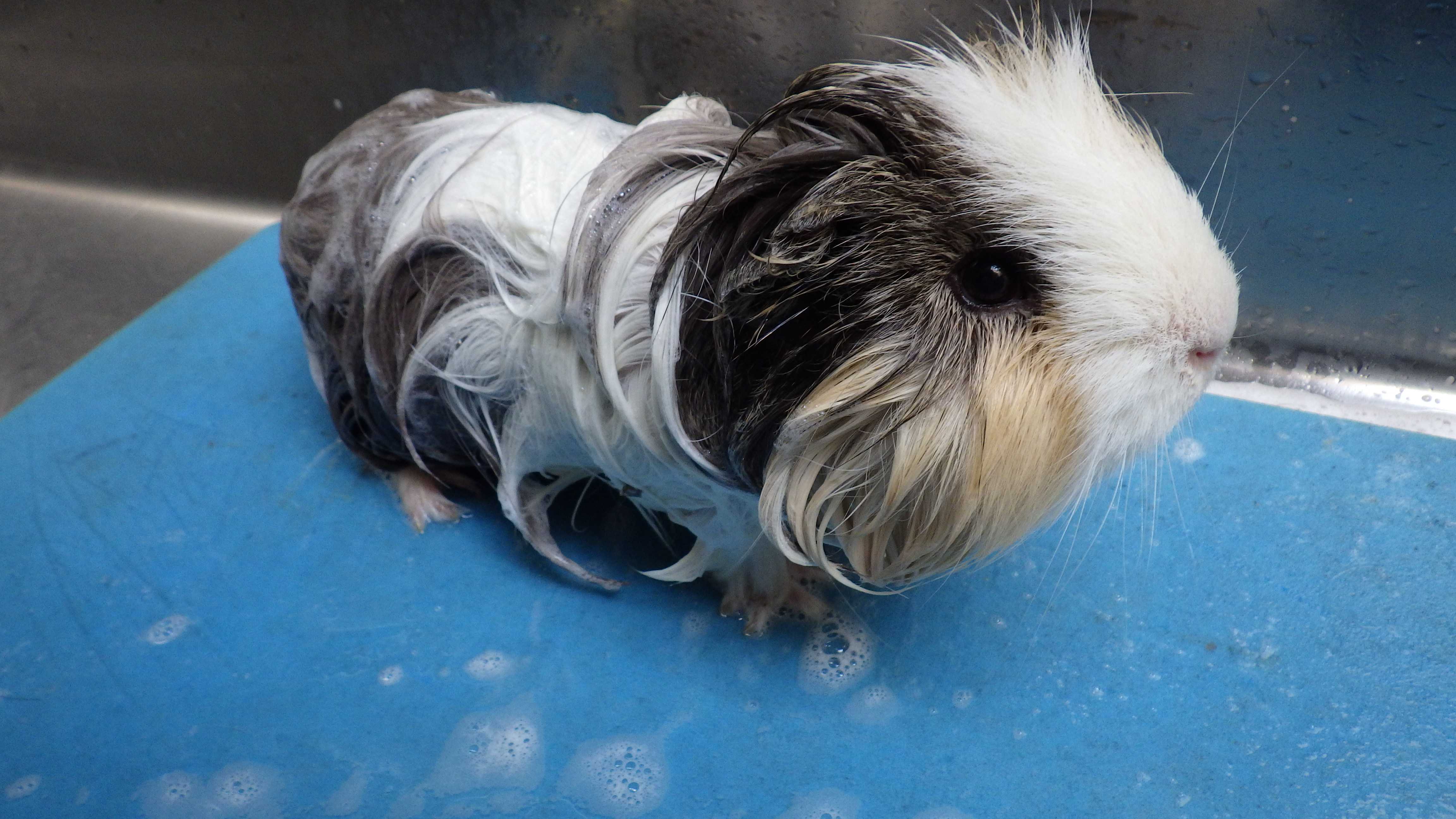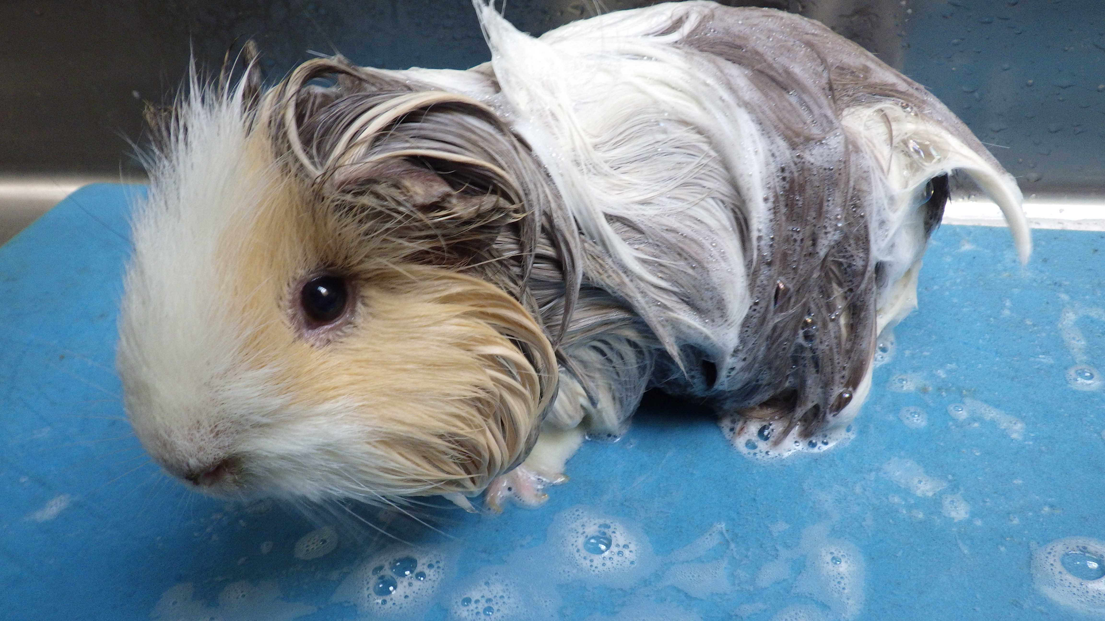 皮膚病のモルモットが お風呂にやってきました。