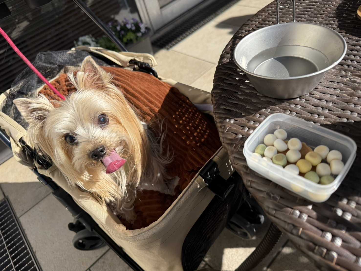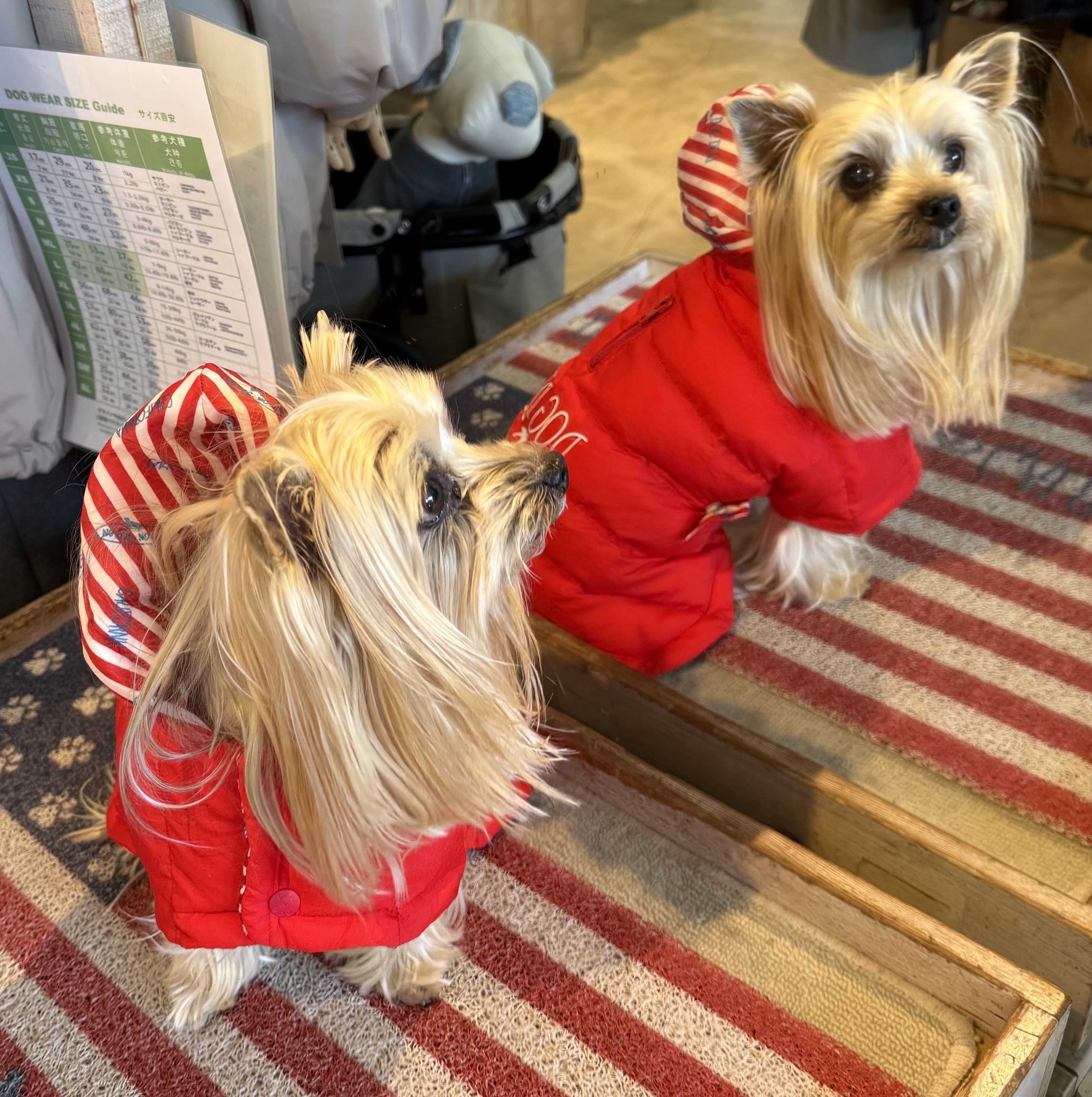 12日 晴れ☀️ 朝8時現在気温、4℃予想最高気温、9℃二日続いた突風が漸く収まり砂混じりの ベイエリア口の中迄砂が入って来ます。今日は風無し.お散歩出来そうです。タイムセールばかりのお洋服のモアナさん。"DOG DEPT" に行って. 防寒コートを買ってあげました。 色は赤🟥を人と同じで.シニアになると明るい色を着た方が若く見えます♪試着中 えーー. どっちが本物⁇(懲りずにやっております)🙇♀️DOG DEPT 湘南江の島店 お隣りお人形昨日は突風が吹き.お散歩はお休み。赤いコートが気に入った様子で..晴れたらお散歩行こうね♪お父さんとランチ レッドロブスター 江の島店隠れメニュー シーフードカレー🍛+🥤濃厚なルーにシュリンプとめちゃくちゃ美味しいとしか表現出来ません。🙌帰宅途中 島忠さんへ太郎とシローも元気にしていました。仲良しのお姉さんにコート🧥を見せ誉めて頂き御満悦のモアナさんです♪突風の日でも負けずに楽しく過ごせたモアナ家でした!今日は風無しお散歩出来そう..富士山🗻見えるかな?見えました〜美しい..。 (しろやま公園にて)明日が良き日であります様に。 日々感謝 🙇♀️ 最近の玉ちゃん.バッハに見える。 疲れた時に..にほんブログ村にほんブログ村にほんブログ村にほんブログ村