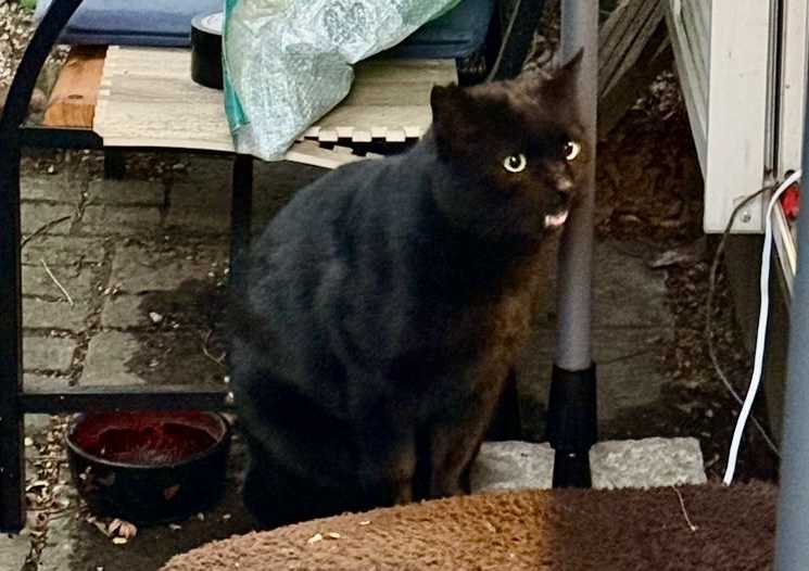 11日 曇り 風強い🌪️朝8時現在気温、10℃予想最高気温、 15℃昨日より気温は高めですが兎に角風が強く.まるで春一番!クロちゃんは.とても元気です。食欲旺盛. 庭の電気マットに気がつくと寝ています。昨年迄は滞在時間が短くあれこれ試行錯誤しても全て上手く行かなかったのに..御近所のウッドデッキの下で雨宿りしたり我が家の車の上で寝ていたり..(新車)ボス君兄弟がパトロールしなくなった事が功を奏し. のんびり過ごしている姿を見掛ける様になって来ました。御近所さんの御迷惑にならない様..お庭に小さな屋根(テント)をつけました。小雨位なら気にせず寝ていられます。これなんだろう⁇..と見上げていますが.夜はグッスリと寝ていました。風除けにはならないけどマットが濡れずにすむのでこちらも夜中安心して眠れます。何度もやって来ては.家を覗き直ぐに.ミャーと鳴きます。まだまだ全く触れません。でもササミを割いてると尻尾を高く上げて口を近付ける仕草をします。そして早々に去り..又やって来ます。毎日毎日その繰り返しです。見守ります。ミャー これ何?君が濡れない様に屋根つけたよ。深夜 何だか気になる様子今朝は突風の中ご飯早くちょうだい!キャットタワーも時々登ります。小さなお庭で居心地悪いと思うけど我慢してね。 ☆電気マットも.12時間のタイマー式に変え いつ来ても暖かい様にしました。 連休中は寒波がやって来る予報です。 どうぞくれぐれもお気をつけて お過ごし下さいませ。いつも有難う御座います。 日々感謝 🙇♀️にほんブログ村にほんブログ村にほんブログ村