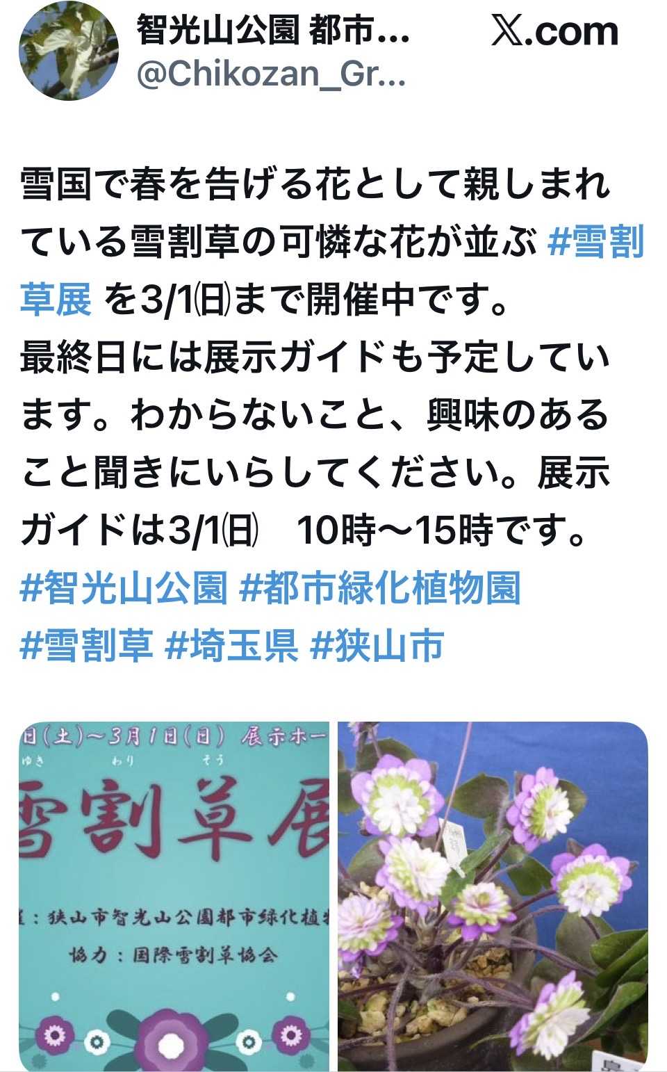 明日は、智光山公園の「雪割草展」に行こうと思…