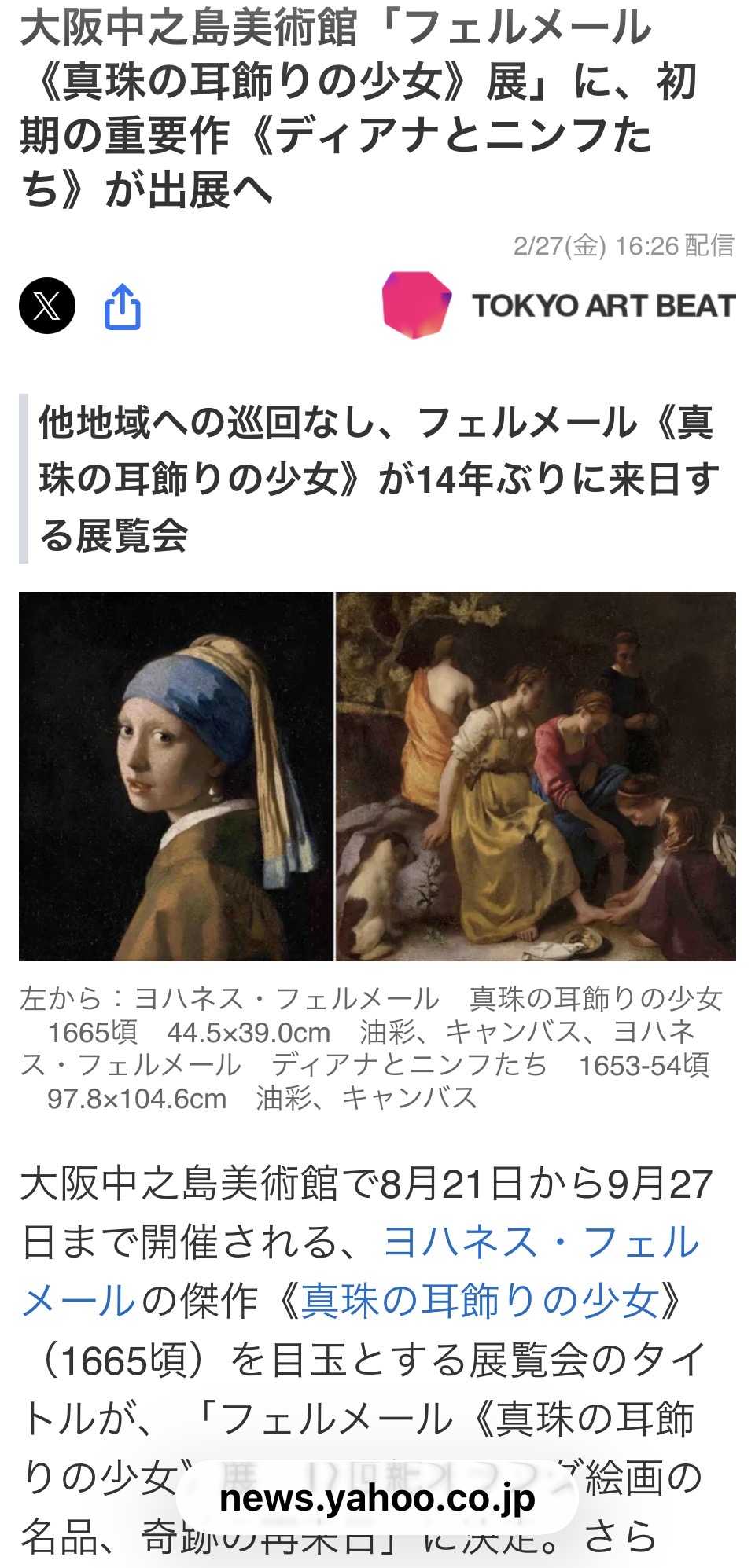 フェルメール展が大阪であるので、旅行も兼ねて…
