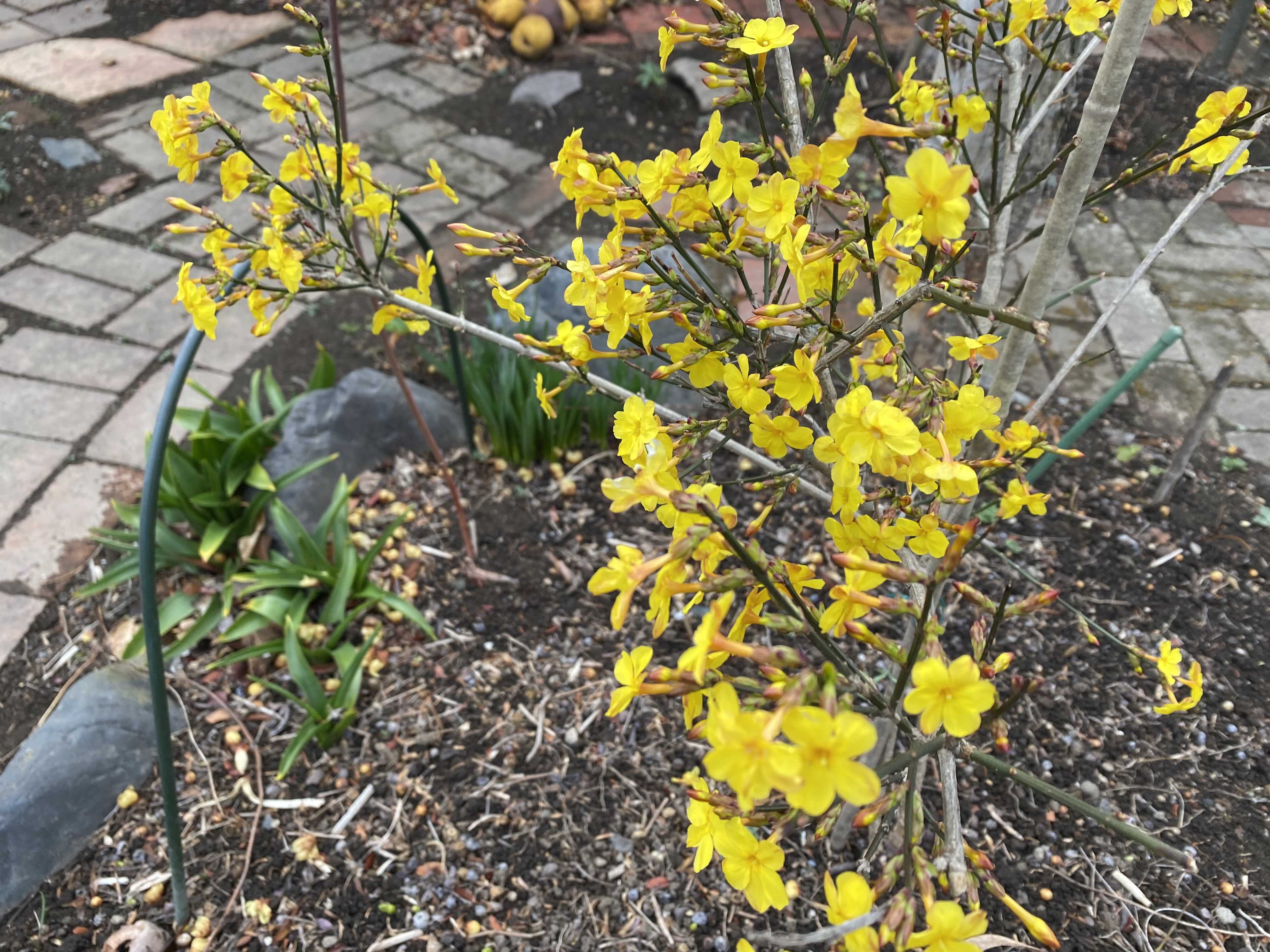 黄梅が満開。寒あやめ。お雛さま飾りましょう。