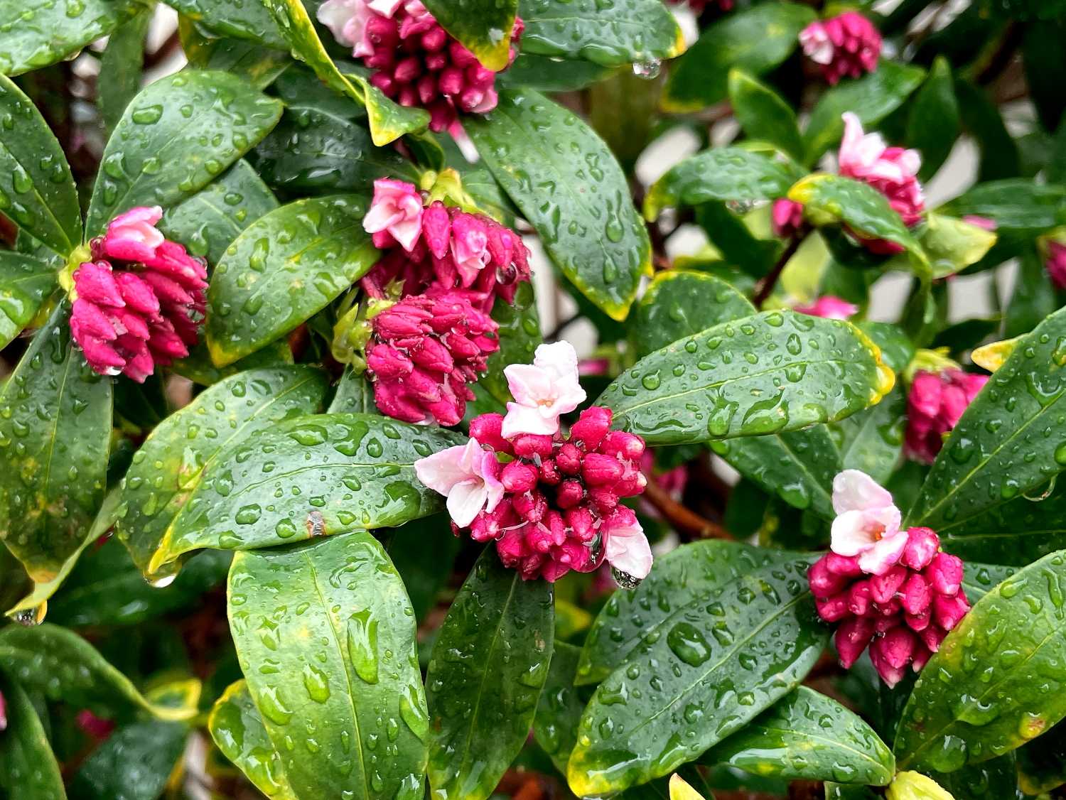 ジンチョウゲ(沈丁花)「雨の中で咲き始め」@…