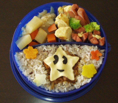 登園3回目にあたるはずのこの日、優介の体調が万全ではないので、おうちで遊ぶことにしました。本人はテンションが低めではあるものの、愛車にトラッキーを乗せ走り回り、お世話をしたり大忙しでした。私も、ちょっとスローな優介を見ながら、掃除機をかけたり、仕事をしたりと忙しく過ごすました。せっかく昨日作ったお弁当は優介のランチになりました。第3回 ハヤシライス・キラキラ弁当*解説*玉子焼きブロッコリーお花のウィンナーまたまた、大根とニンジンの煮物ご飯チーズの星の下には、ハヤシライスが隠れています。優介がどんな風にしてお弁当を食べるのか見ることができました。まず、好物から責めるようで、本日はハヤシライス→ウインナー→玉子焼き少々。以前大好きだった大根とニンジンの煮物はブームが去ったようで、全く食べませんでした。***晩ご飯***ハヤシライス義母作 豚の大腸&胃袋の煮物ヽ(|||≧▽≦|||)/ キャー。昨日のスープ