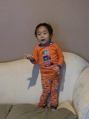 熊本の従妹&叔母から出産祝いが届きました。叔母から、優徹にはかわいい冬用のジャケット。リバーシブルタイプで、着ると、熊さんみたいにぼこぼこして、暖かそう。そして、優徹と優介おそろいのトラック柄のパジャマ。優介はすごく気に入ったらしく、湯上りに着て走り回っていました。叔母と優介は今年5月に一度、私が帰省中にちょうど叔母が実家に遊びに来て3日ほど一緒に過ごしたのですが、優介は叔母に「びょんびょん」という、意味不明なあだ名をつけて遊んでもらっていました。今回パジャマが届いて、私 「優ちゃん、これね、びょんびょんからのプレゼントなんだよ。」優介 「ジャマ、びょんびょん、買った!」どうも、叔母のことを覚えているようでした。従妹からはこれまた、かわいいニットのロンパースをいただきました。オーストラリアに無いようなデザインなので、今から真冬になるのが楽しみです。