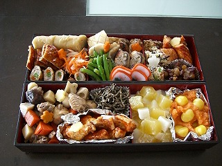 あけまして おめでとうございます!m( __ __ )m 本年もどうぞよろしくお願いします。さて、年末より気合入れまくって作ったおせちですが以下のように出来上がりました・お昼にIちゃん一家が遊びに来てくれて、我が家で、お正月パーティーです。優介もIちゃんの息子と遊べて大盛り上がり。おもちゃの取り合いして泣いたり、泣かされたり。私たちは大いに食べ、大いに飲みました。楽しく食事をして、おしゃべりに盛り上がっているとき、うむ?おかしい。息子2人がやたらにおとなしい。おとなしい=ろくなことをしていない予感的中。 ガ━━(゚Д゚;)━━━ン!!熱帯魚の水槽に、ミニカー20台あまり、雑誌数冊、色鉛筆10本などを満々に入れて、2人で喜んでいる。あいている口が一同ふさがらないほどびっくりしました。夫たちは、子供を叱る役へ、ママは水槽の中からおもちゃや雑誌を取り出し、熱帯魚救出へ。まあ、びっくりしましたね。新年早々、いたずら100%ですよ。どうりでおとなしいはずだ。今年の9月には優徹も1歳。これからどんどんやんちゃになるはず。そして、優介も。どんな一年になるんでしょう?忙しくってもいい。いたずらもいい。ケガをさせない、ケガをしない。大金持ちにならなくっても、みんなが普通にご飯食べれる程度に幸せで、健康であればそれでいい。5kgくらい体重が減ってくれたら、なおさらいい。ついでに宝くじも当たってくれたら、なおいい。今年、一年普通に幸せに過ごせますように。そして、皆様も、素敵な一年になりますように。