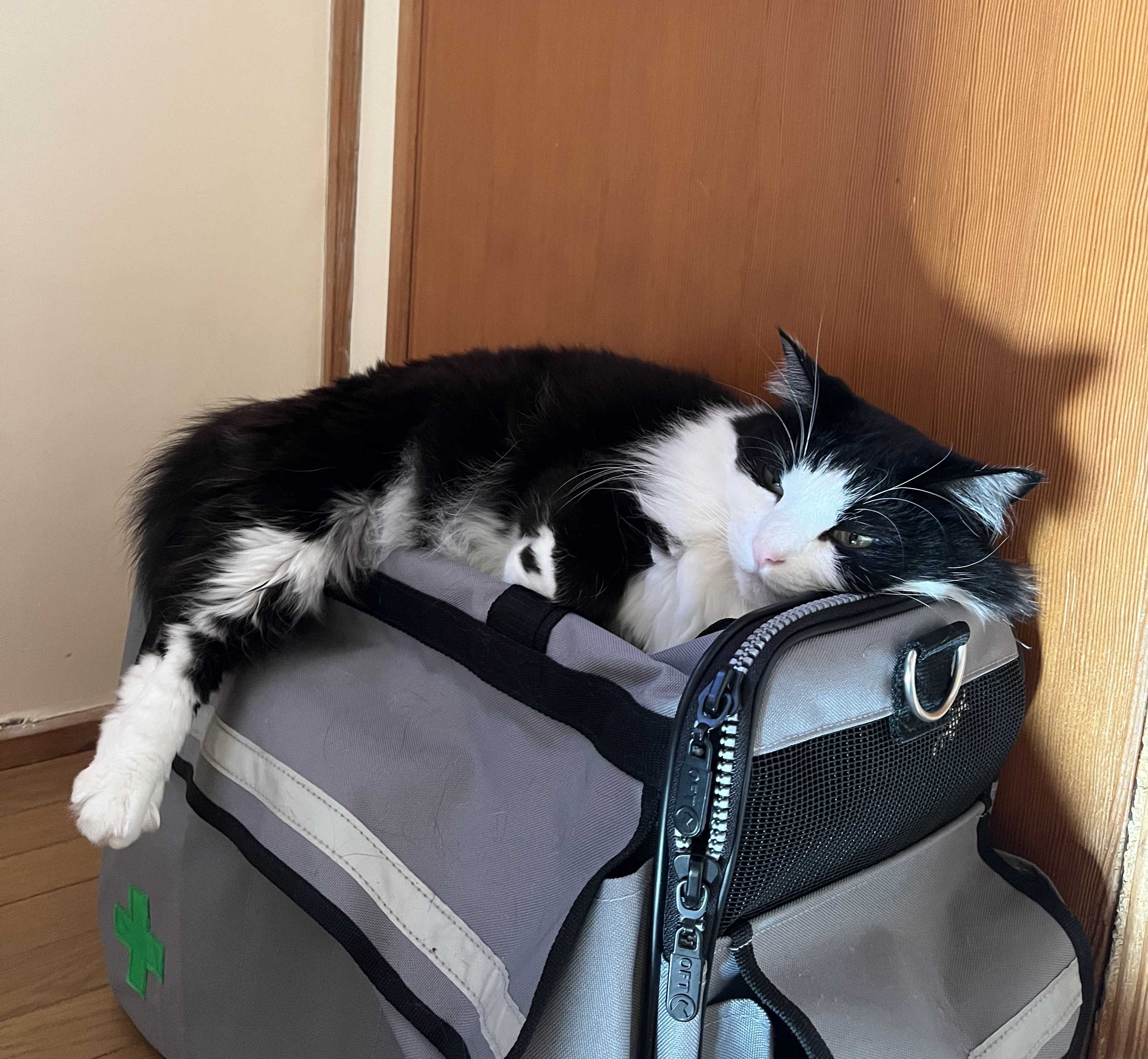 今日は、朝の面会。はにわクンも一緒に行ってくれたので、車で施設へ。行ってきまーす、の時もミキはここに。母は植物を見るのが好きなので、寒い中、一番大きく育っている新芽を撮ったらば、結構ぼやけてた*~(´・ω・)~*それでも喜んでくれたので、ヨシとする。最も元気なネギさんも見せた。だいぶ前に買ったネギの、たまたま根っこがついていたので何となく植えただけなのに。すごいね、ネギさんは。寒いが晴天。車で助かった…。 だから今日は、いつもの踏切は通っていない。悼むのは後日。普段と違う朝一面会にも関わらず、母は「ありがとうね」と言って出てきてくれた。そして母は、はにわクンを大変気に入っている、はにわクンは穏やかを絵に描いて磨きあげたような穏やかな人だからだ、ここまで裏表なく穏やかな人間を、私は他に知りません、と自信を持って言える。母は今日もよく喋った。よかった。それだけで、私も今日は安心して過ごせる。夕食後のひと眠り。スコシネマス。。ミキはここに変わったのですね。この緊急時用猫バックは、その様に作られているだけあって、とてもしっかりしている。猫も10kgまでOK!ミキあになら余裕で入るね。てるは…てる専用に入ろうね。みんな入ると流石に重量オーバーになるので。