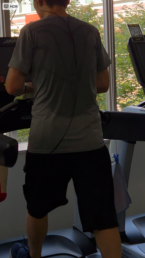 背中に何かつけています。形状から、アンテナのように思われます。イヤフォン????…