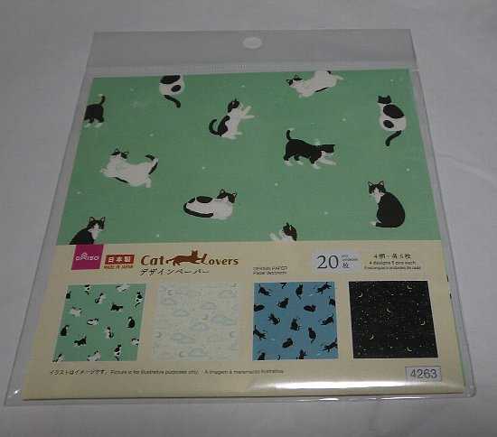 100均でみつけた「デザインペーパー 猫の日文具 星と猫」ダイソー。4柄×5枚で20枚入り。