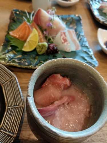 魚介の肴と日本酒の豊富さが売りのお店です。お料理はコースで一皿ごとにそのお料理に合う日本酒をペアリングしてくれる飲み方もできます。私は残念ながらお酒はやめたのでお料理だけいただきました。