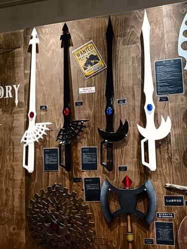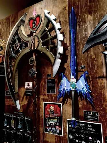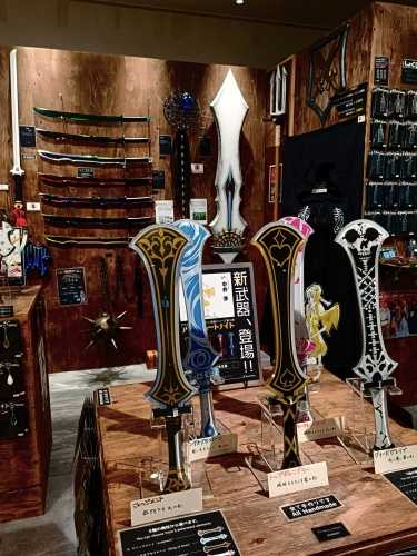 舞台用の小道具としての武器だそうですが、コスプレなどで一般の人も買うようです。職人さんが一つ一つ手作りしており、宝塚歌劇や映像制作会社などが取引先のようです。何か買うと光る魔法陣の上で写真を撮れます。コロナ以降アニメをよく見るようになったので、面白い店だなと思いました。勇者の方は是非どうぞ!(魔法系はフリーレン、無職転生、劣等生、リゼロなど見ていますww)