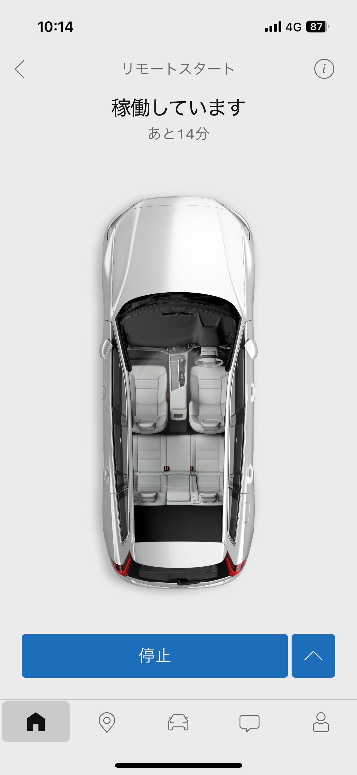 ボルボの携帯からエンジンをかける事ができるこのアプリが夏は最高です🤭玄関を出る時に(5分前に)ボタンを押して着いたらすぐに出発できて、しかもエアコンが効いている❣️アイドリングが長いと環境に良くないですが、暑い日は結局、涼しくなるまでアイドリングしないとスタートできないので同じことですからね。さすがボルボ❣️