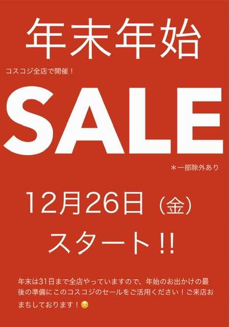 コスコジ全店、31日までやってます‼️ご来店お待ちしております‼️