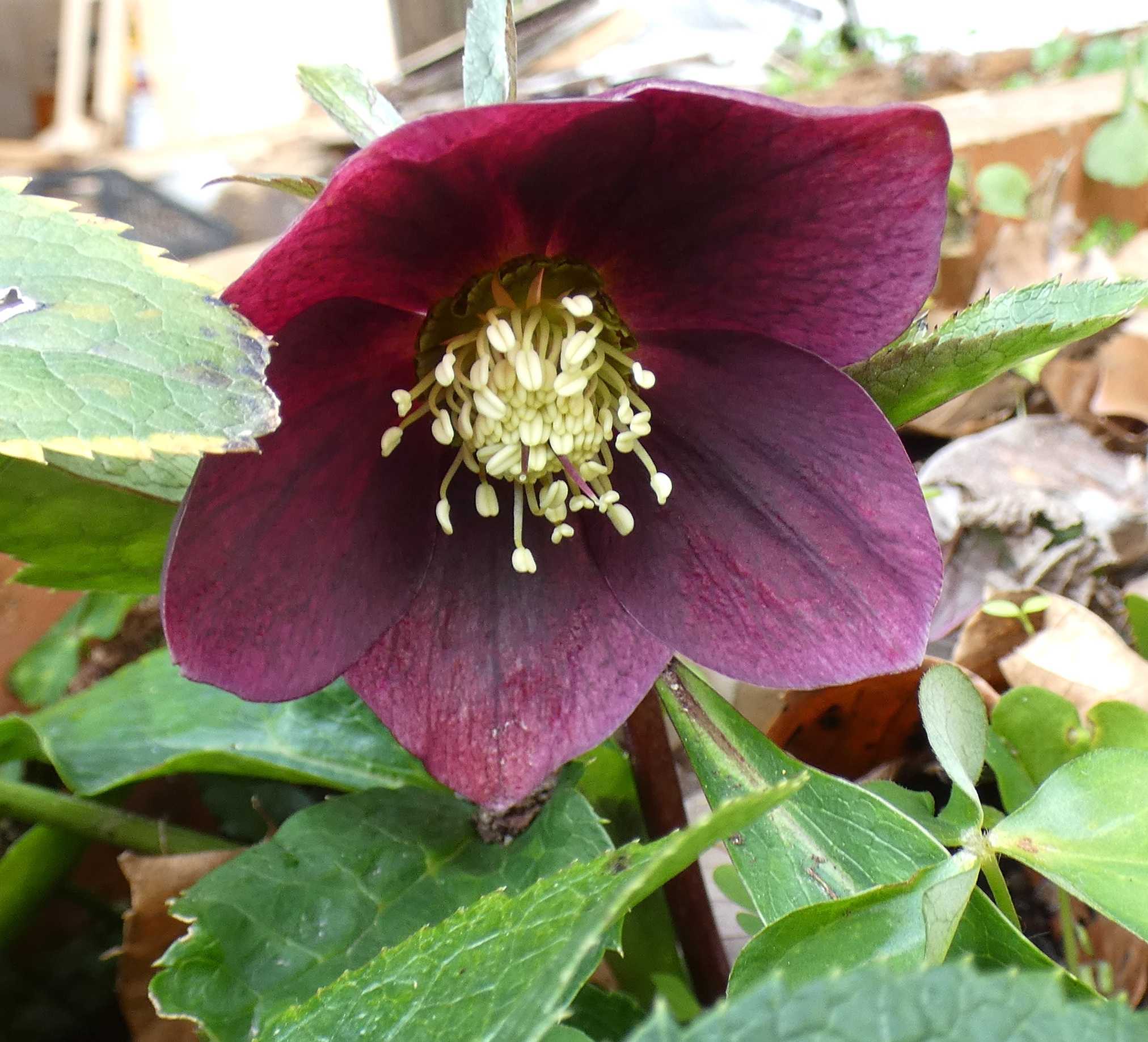 クリスマスローズのダブル、半八重が咲きだす