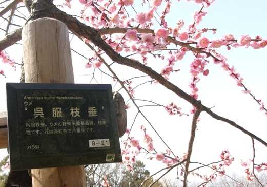 枚岡梅林のウメの花・呉服枝垂