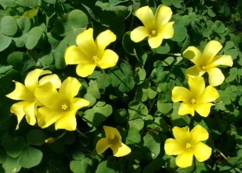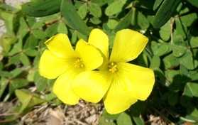 家内は 変わりなし! イラスト 色々描いてくださった 看護師さんインフルエンザのためお休み、新しい方が来られた! 早く治るといいな! 私は2月 初めの 通院時 「血糖値」も「HbA1c」も前回より高くなってた… 通院ショック受けて、運動習慣を以前より増やした! 効果は未定だが頑張りたい! さぁ~! 明日(14/土)から、家内は外泊! いつものように~頑張り楽しみたい! === オオキバナカタバミ(大黄花片喰) === - - オオキバナカタバミ(大黄花片喰) カタバミ科 カタバミ属(オキザリス属) [別 名]・・・・・キイロハナカタバミ(黄色花片喰) オキザリス・セルヌア [花言葉]・・・・・輝く心(オキザリス) - 明治時代中頃に観賞用として導入され、1961年に鹿児島県で帰化が確認され、 各地に野生化しています。 空き地や道端などでみられる高さ 20cmの多年草。 地下に鱗茎があります。 葉は鱗茎から叢生し、3小葉からなります。 小葉は倒心臓形で先端がへこむハート形になり、表面には紫褐色の斑点があり、 長い葉柄もあります。 葉よりも高く高さ 20cmほどの散形花序を出し、10個ほど 花をつけます。 花は径 1.5~4cmで黄色の5弁花です。 ほとんど結実しません。 - おまけ画像