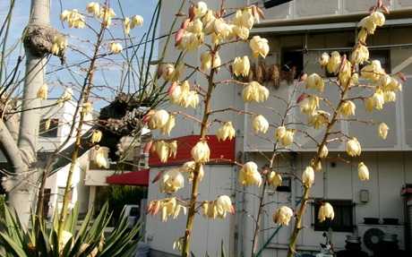 家内の入所施設は月曜日は訪問診察あり! でも今日は市の医療センター行き! 午後2時半迎えに行ってへ連れて行く! 今日は診察も会計も待たされた… 次回予約入れるも医師の都合もあり、3/23(月)になった! 喫茶に行く時間もなし! 施設に戻って暫くしたら月曜だけあるリハビリ! 終われば即夕食! バタバタ… 家内は夜9時頃の「おやすみなさい!」 最近出ないことも多い・・・ === === ユッカラン(蘭) === === ユッカラン(蘭) リュウゼッラン科 ユッカ属(イトラン属) [別 名]・・・・・ユッカ、アツバキミガヨラン(厚葉君が代蘭) [花言葉]・・・・・勇壮、雄壮。 [名前の由来]・・・英名は「Spanish dagger」で「スペインの小刀」の意味。 剣状の葉っぱに由来します。 中国名は「鳳尾蘭」で「鳳凰」の 尾のような形をした蘭という意味です。 - 春と秋に二度咲きします。 秋の花は9月下旬頃から咲き出すものと、 11月になってから咲き出すものに分かれるようです。 - 21/11/14(日)・・京都府立植物園で見た フサフジウツギ、アツバキミガヨラン 19/07/10(水)・・・京都府立植物園で見た、ユッカラン、ムラサキバレンギク