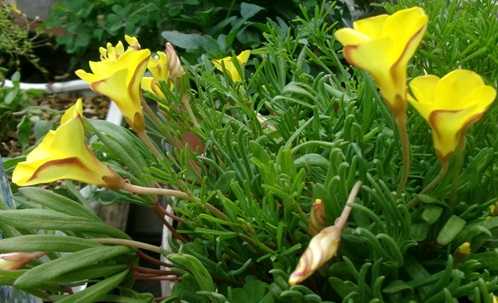 昨日は「新歌舞伎座」行き!今日はどこにも行かずのんびり?いや? 午後から1軒! (10/土) (11/日) ゆっくりできず私には色々と用事がある! おむつ交換して朝食の用意、洗濯等… 家内の歯磨き手伝い、花に水やり時間があれば写真整理、ブログ下書き作成、昨日の 新歌舞伎座の写真を施設に飾るため色々…昼食準備おむつ交換、家内の足のマッサージ リハビリ! スーパー1軒だけ行った! 夕食用意ニおむつ交換! 食事が終われば洗物! 毎食後、薬も飲ませなくちゃ~! おむつ交換も最低6回? やはり両立は 限界か? ブログ訪問コメントも遅れてごめん! 今からお風呂だ! 四苦八苦… でも頑張ろう! === === オキザリス・ペスカフラエ === === オキザリス・ペスカフラエ カタバミ科 カタバミ属(オキザリス属) [別 名]・・・・・オオキバナカタバミ(大黄花片喰) オキザリス・セルヌア とも言うようだ! オキザリス・・・色々こちら! - オキザリスとは朝、日が当たると微笑むように花開き、雨や曇りの日は機嫌を 損ねたように閉じる花。オキザリスは日本人にはなじみの深い花で、今、日本では 年間を通じて、30種類ほどのオキザリスの花を見ることができます。 日本への渡来は江戸時代の末期で、その中でもハナカタバミの名で親しまれた 「ボーウィー」は、戦前戦後を通じて冬の鉢花として人気がありました。緋紅色の 暖色系の花と丸みを帯びた照葉は、色彩の乏しくなる季節を飾る、庶民の花でした。 10月頃から咲き始め、真冬は一時開花が止まりますが、春には再び咲きますので、 どこの家でも日当たりのよい玄関先に一鉢飾られていたものです。 オキザリスは南アフリカ、中南米の熱帯、亜熱帯、温帯に多く分布し、300種類ほど あるのではないかと言われています。種類が多く、分布地も広いので、性質や形態は 非常に変化に富み、中にはとてもオキザリスとは思えないようなものもあります。