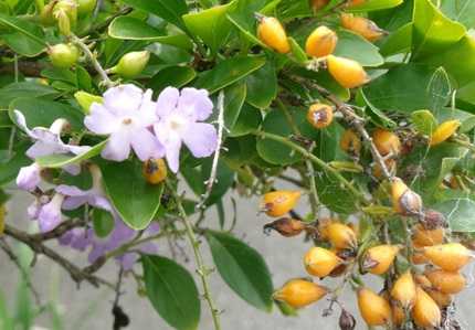 施設入所の家内の部屋に行くと、また看護師さんがメモ用紙に描かれたイラストが また増えていた! 訪問看護は毎日3回 月曜のリハビリは 時間変更され17:20になってるが… 明るく楽しい看護師さん! 家内も癒されてる♪ 足のリハビリも家内自ら声を出して「曲げて蹴る!」等々頑張ってる! 私もそれを見ているだけでも嬉しい! 先輩から相変わらず あり! 家内にするも出なかった… 明日また行くよ! (30/金) === === デュランタ === === - デュランタ クマツヅラ科 デュランタ属(ハリマツリ属) [別 名]・・・・・ハリマツリ(針茉莉) タイワンレンギョウ [花言葉]・・・・・歓迎、あなたを見守りたい。 [名前の由来]・・・ローマ法王の侍医で植物学者の デュランテスさんの名前に由来。 - デュランタは藤色や白の小花が集まって房状に垂れ下がって咲く人気の熱帯 花木で、夏の鉢物としてよく流通しています。また、観葉植物として観賞される 品種も一般に出回っており、沖縄などの熱帯地域では生け垣としてよく植えられ ています。丈夫で開花期間が長く、霜に当てなければ戸外でもよく冬越しする ので、暖地では庭木として植えることができます。 25/08/22(金)・・・明日(23/土)から外泊! 花はデュランタ、ルリマツリ -- -- --- 19/11/07(木)・・・デュランタの実、ツキヌキニンドウの実 おまけ画像