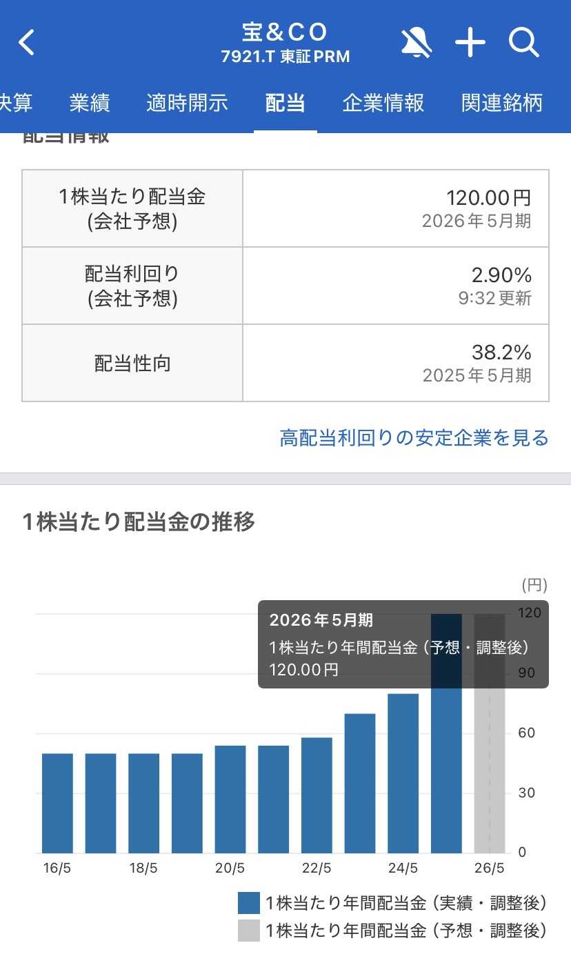 投資を始めたばかりの皆さん、「5月決算」という企業に注目したことはありますか?日本の多くの企業が3月に決算を迎える中、独自のスケジュールで動いているのが、今回ご紹介する株式会社TAKARA & COMPANY(以下、TAKARA&CO)です。上場企業の「成績表」を作るサポートをしているこの企業。いわば「株のプロたちが頼りにするプロ」の決算が、僕たちの資産にどう影響するのか。配当金を中心にお話しします。今回の決算のポイント:原収現役でも「通期予想」を据え置く企業の自信2025年1月に発表された最新の中間決算(第2四半期)を振り返ると、方向性としては、前年同期比で**「減収・減益」**という結果になりました。これは、通訳翻訳事業(株式会社サイマル・インターナショナルなど)が前期の好調の反動を受けたことや、システム開発への投資が先行したことが理由と考えられます。しかし、堆誠一郎社長率いる経営陣は、通期の業績予想を据え置いています。これは、下半期に向けて主力である「ディスクロージャー関連事業(宝印刷株式会社)」の需要が堅調であるという、企業としての自信の表れと考えられます。配当金と株主還元の動き:2025年5月期は「90円」への増配予想を維持!初心者の方が最も注目したいのは、この「還元」の厚さです。最新の配当予想によると、2025年5月期の年間配当は1株あたり90円となる見込みです。前期(2024年5月期)の80円から、さらに10円の増配。さらに、2026年5月期以降のさらなる増配(120円水準)を期待させるような、非常に力強い株主還元方針を掲げています。同社は「安定配当」を基本方針としており、「一度約束した配当は、しっかり還元する」という姿勢が非常に強い企業です。業績が一時的に足踏みしても、配当を維持・増額しようとするこの姿勢は、僕たち長期投資家にとって最大の安心材料になる可能性があります。投資初心者が注目すべきポイント:5月・11月配当が「家計の隙間」を埋めるなぜこの銘柄が初心者におすすめなのか。それは「配当をもらえるタイミング」にあります。1. 配当金の「空白期間」を埋める日本株の多くは6月と12月に配当金が届きます。一方、TAKARA&COは5月と11月が権利月。つまり、多くの人が配当をもらえない「谷間」の時期に現金が手元に届くのです。これによって、毎月安定したキャッシュフロー(現金の流れ)を作る助けになると考えられます。2. 自分の資産への影響の考え方仮に100株保有していれば、年間で9000円(税引前)の配当金です。新NISAで持っていれば、その全額を再投資に回すことも、生活の足しにすることもできます。株価の短期的な上下に一喜一憂せず、「配当という果実」をコツコツ受け取る楽しみを教えてくれる銘柄です。まとめ:今回の決算をどう受け止めるか株式会社TAKARA & COMPANY。今回の決算内容から、投資への先行コストをかけつつも、株主への還元は決して怠らないという企業の「本気」を感じ取ることができました。• 中間決算は足踏み。でも通期の目標は変えない「強気」の姿勢。• 1株90円への増配予想は、僕たちの資産形成の強い味方。• 5月・11月という希少な配当タイミングが、投資生活を豊かにする。断定的なことは言えませんが、株式市場が存在し続ける限り、彼らの「情報を正しく伝える仕事」はなくなりません。こうした地味ながらも最強のインフラを支える企業を信じて、一歩ずつ資産を積み上げていきましょう。未来の自分のために。今日も冷静に、楽しみながら積み上げていきましょう!▶ 大ちゃん✨保有銘柄一覧はこちら