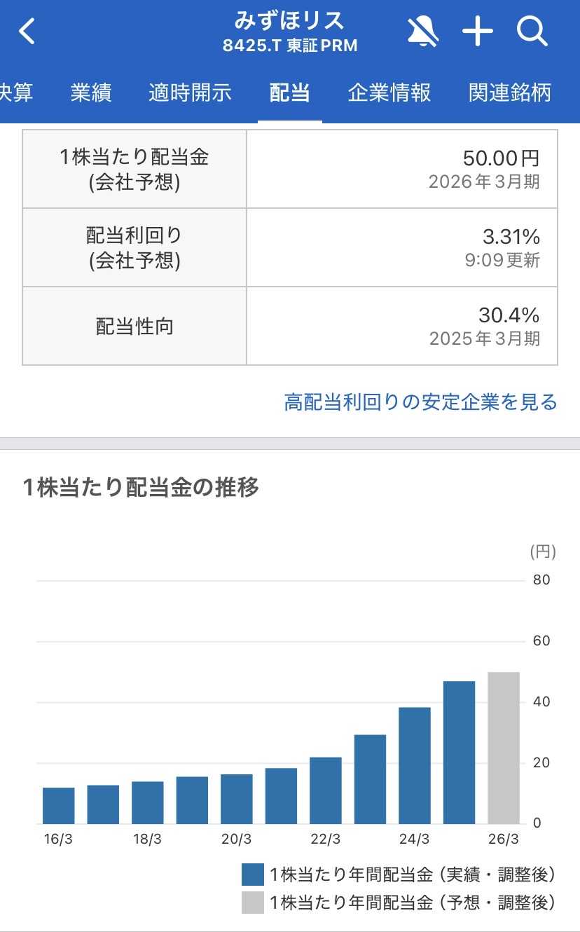 2026年3月、投資を始めたばかりの皆さん、資産の状況はいかがでしょうか。中東情勢の緊迫や市場の乱高下で、「自分の持っている株は大丈夫かな?」と不安になる日もありますよね。そんな時こそ、企業の「成績表」である決算を自分の目で確かめることが、心の安定に繋がります。今回は、僕の持ち株の一つでもあるみずほリース株式会社の最新決算(2026年3月期 第3四半期)を振り返ります。今回の決算のポイント:本業の「稼ぐ力」は順調に拡大中!2026年2月5日に発表された最新決算を見ると、同社は非常に力強い歩みを続けていることが分かります。方向性としては、前年同期比で**「増収」**を達成。特に、企業の設備投資需要をしっかり取り込み、営業資産(貸し出している資産)が積み上がっている点が印象的です。一部でコスト上昇の影響は見られるものの、本業の儲けを示す利益面でも前年同期比で改善傾向にあります。市場の受け止め方としては、通期の業績予想に対して順調な進捗を見せていることから、安心感が広がっていると考えられます。短期的な株価の動きは誰にも断定できませんが、企業が着実に「やるべき仕事」をこなしていることが伝わる内容でした。配当金と株主還元の動き:圧巻の「21期連続増配」予想を維持投資初心者の僕たちにとって、最も気になるのは「結局、配当金はいくらもらえるの?」という点ですよね。結論から言うと、みずほリースの2026年3月期の年間配当予想は、1株あたり50円。これは、前期(2025年3月期)の実績である47円からさらに3円の増配を見込む、非常に前向きな数字です。もしこの通りに実施されれば、なんと**「21期連続増配」**という、日本株の中でもトップクラスの記録を打ち立てることになります。同社は「業績に応じた配当を実施する」という基本方針に加え、配当性向(利益のうち何%を配当に回すか)を30%水準に引き上げるなど、株主還元を非常に重視しています。こうした姿勢は、僕たちが長期で資産を育てていく上で、大きな安心材料になると考えられます。投資初心者が注目すべきポイント市場が荒れている時に、僕たちが意識すべきことは何でしょうか。1. 短期の値動きに振り回されない日経平均が1000円、1500円と動く局面では、みずほリースの株価も上下する可能性があります。しかし、リースというビジネスモデルは、一度契約を結べば長期間にわたって収益が積み上がる「ストック型」に近い性質を持っています。目先の株価よりも、「配当という果実が育っているか」に目を向けましょう。2. 自分の資産への影響の考え方仮に100株持っていれば、年間で5000円(税引前)の不労所得が期待できます。新NISAの成長投資枠を活用していれば、これがまるまる手元に残ります。この「確かな入金力」こそが、暴落時にパニック売りを防ぐための最強の武器になります。まとめ:長期視点でのスタンスみずほリース株式会社の最新決算を確認して、僕の信頼はさらに深まりました。• 前年同期比で改善を見せる、着実な「稼ぐ力」。• 21期連続増配を見込む、圧倒的な「株主還元への熱意」。• どんな時も「配当金」という形で僕たちの資産を支えてくれる。断定的なことは言えませんが、こうした安定感のある企業をポートフォリオの軸に据えることは、投資初心者にとって非常に理にかなった戦略だと考えられます。市場の嵐に一喜一憂せず、こうした優良企業の成長を信じて、淡々と、そして着実に資産を積み上げていきましょう!未来の自分のために。今日も一歩、冷静に積み上げていきましょう!▶ 大ちゃん✨保有銘柄一覧はこちら