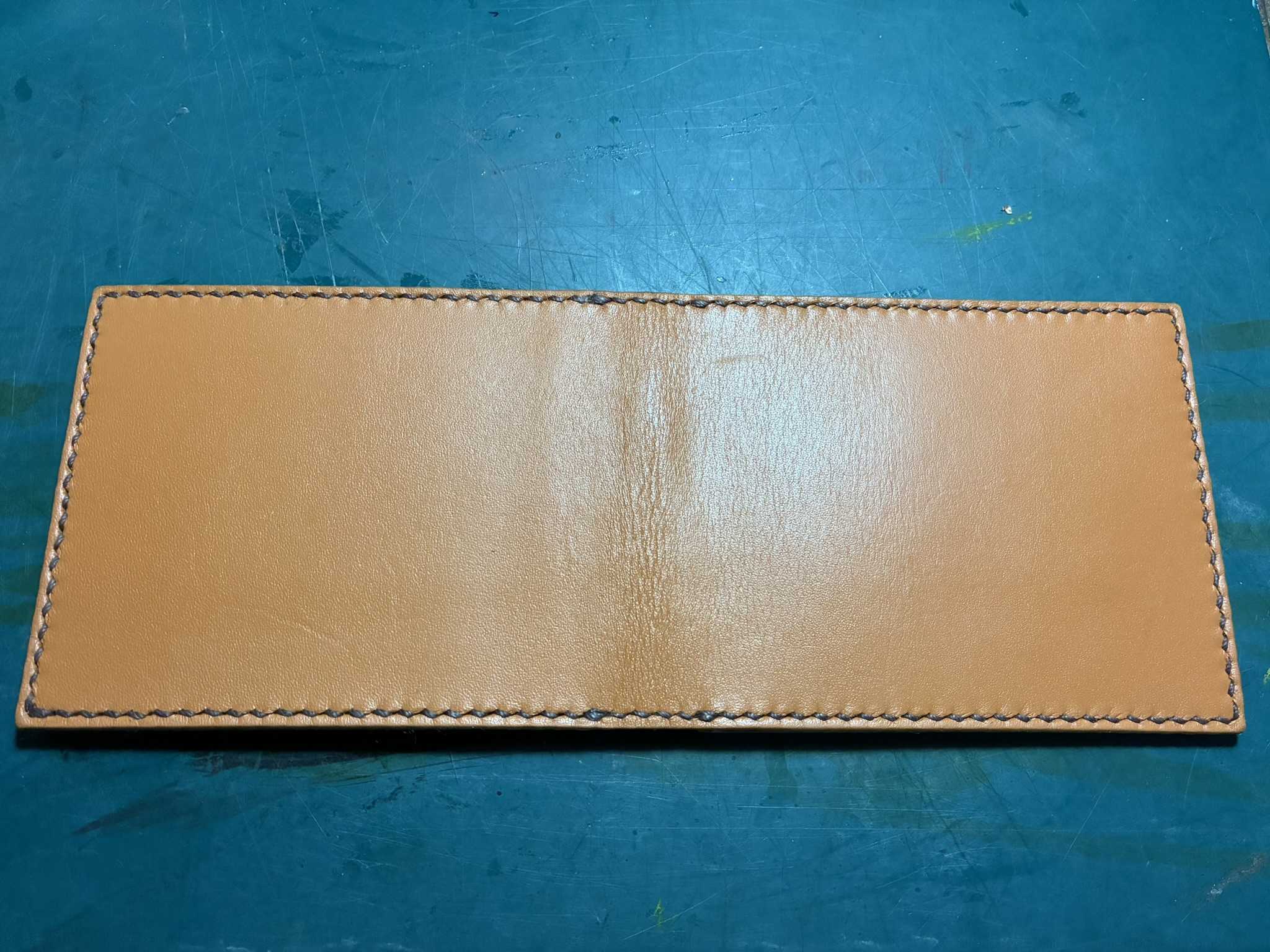 カード入れの周りを縫いました。。コバにサンドペーパーをかけ、トコノールを塗り磨きます。