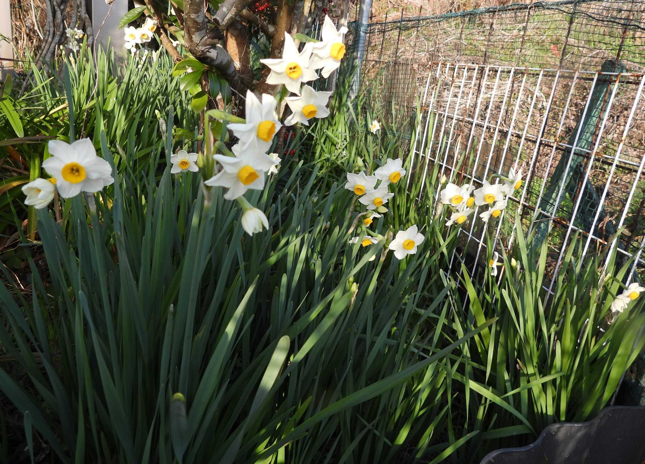 アリス花壇奥のスイセン・小学校でむかし遊び凧あげ~羽子板などで走り回る・