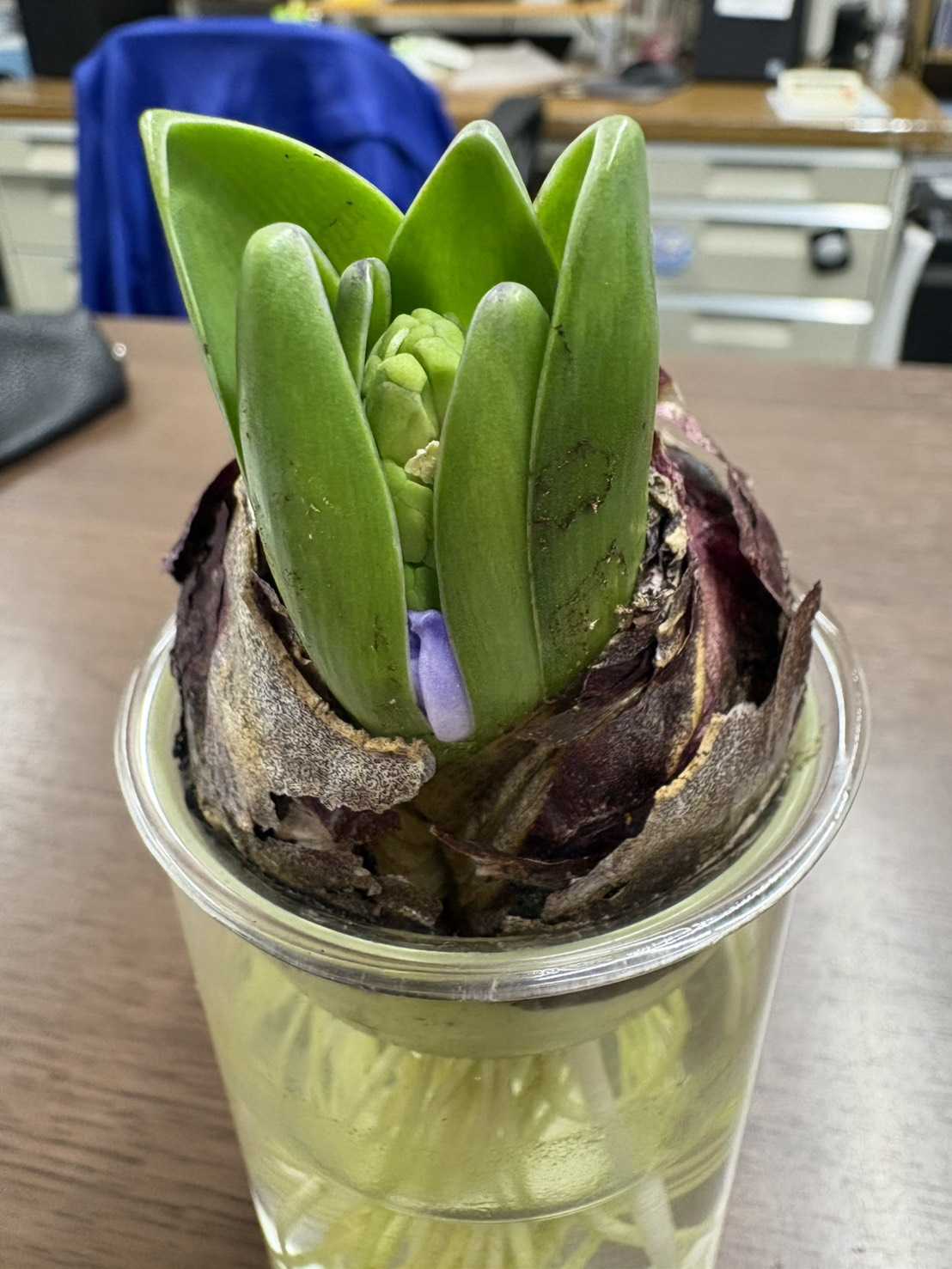 ************************************************************事務所で育てているヒヤシンスが芽をだし、今朝は青い花?が見えてきたこれ、水芭蕉のように葉っぱが花に見えるということ??いづれにせよ、少しづつ、少しづつ育ってきているなんか、ハッピーな時が流れている癒されている**************************************************************