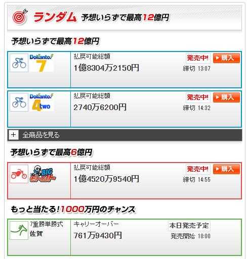 宝くじのような振り分け式とちがってセレクト式が貯まるとそっちに投資がもっていかれるせいか掛け金が予想以下だったなまぁそれでもDok4は優秀だけどねつぶが揃ってきていい感じなんだが買い方の問題だけどこの中で購入決定するまで自分の券の中身が解らないものはビックmoto他は購入確定前に確認できる。のだが前回ブログしたとおりいままで5回ほどキャンセルしていたのだが(実質4回以内に参加 しないと参加資格無)今期は1回しかキャンセルできなく、キャンセルした時点ですべての予想いらず(当日)の参加資格がなくなるので注意なんだな。おらのやり方はまずはビックmotオートは❽⑦に上位人気だな。ビックmotは単勝連式なので9R❽-? 10R❽-? 11R❽_? 12❽-?のように集中するような場合(8割)不参加でいいと想う。(2026/01/09)今回はオラはパスだな銭に余裕がある方は1Kほど買ってみればーって感じかな。次にDo4なんだけど皆んなゲット思考なんで脅威の参加だ結果をよく見てなかったけど立川は相当あれたのかなDo7の当選率が今期は1/10程度まで下がってるんだよね。和歌山に場所が変更された今日が突破口になりそうなので資金7:3でD4:D7に参加してみればだが無駄な参加は必用ないのでD4D7に1口(400円)してからAIの予想でチェック賭け口は自分でね。だめなら不参加だけどD4,D7どちらを選ぶかは?D4は連勝複式の4RD7は単勝の7R数的根拠はないけれどD4は当選(誰かに)しやすいD7は理解不能だけどここまでこじれていたらD7は3000万D4は1000万程度では今日も非当選かもしれないまぁ結局運だけどさ。当選くじは福引ではなくておさらくベクトルのかかったパチンコ式だからね。落車、失格、同着なんかの別の力が働かないと当選しないかもよ。こんな感じでさ。グットラック!