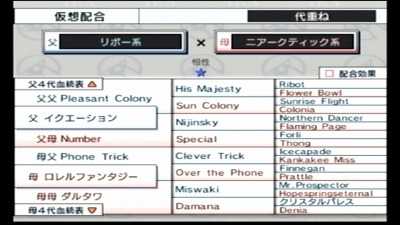 ■ダビつく5「牧場経営3022年目 48873戦14299勝 獲得賞金5953億0295万円 イクエーションという馬をご存じでしょうか。その血統は素晴らしく 父はケンタッキーダービー馬の Pleasant Colony(プレザントコロニー) 兄弟にはアルゼンチンで大成功した大種牡馬の Lode(ロード) 北米で成功したスピード型種牡馬の Polish Numbers(ポリッシュナンバーズ) 日本で種牡馬としても成功した Jade Robbery(ジェイドロバリー) 牝系でも繁殖で成功している姉 Bound(バウンド)や Add(アド)がいます。 ところが、イクエーション本人は競走成績も1勝、種牡馬としても産駒 には恵まれておらず、ダビつくでの種付料も50万円と安価です。 当牧場でも未だにGⅠ未獲得の種牡馬となっており、長らく活躍馬が出ま せんでしたが、とうとう、やっと、期待の馬が現れました。 まだ2歳ですが、グラスワンダーをも圧倒しています。 画像↓クリックでYouTubeへ ※音量に注意してください まずは2歳重賞で弾みをつけますよ~ 全種牡馬G1達成まで、あと109頭」