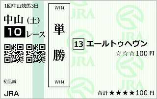 ■2026年01月10日中山10R 初凪賞・エールトゥヘブン(母キストゥヘヴン) 13着・シルバーレイン(母ノームコア) 12着中山11R 迎春ステークス・グロッシェン(母キャットコイン) 12着・マイネルブリックス(母マイネカンナ) 13着■2026年01月11日京都10R 新春ステークス・ミッキージュエリー(母ミッキーチャーム) 2着 複勝140円京都11R 淀短距離ステークス・シュタールヴィント(母マルセリーナ) 15着・モズナナスター(母グランプリエンゼル) 11着中山9R 初咲賞・ヴァイルマティ(母マイネヌーヴェル) 10着中山10R ボルックスステークス・レガーロデルシエロ(母デアレガーロ) 9着中山11R フェアリーS・ピエドゥラパン(母トロゼトワル) 10着■2026年01月12日京都9R 琵琶湖特別・オルトパラティウム(母ザレマ) 12着 京都10R 雅ステークス・カミノレアル(母アイアムカミノマゴ) 14着結果:購入額 2,400円 払戻し 140円 差額 ▲2260円