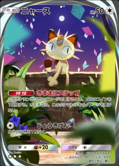 デイリーで1パック開封したら、ニャース(星3イマーシブ)出ました!夢幻パレードを50パック開けても出なかったので、やっという感じです。