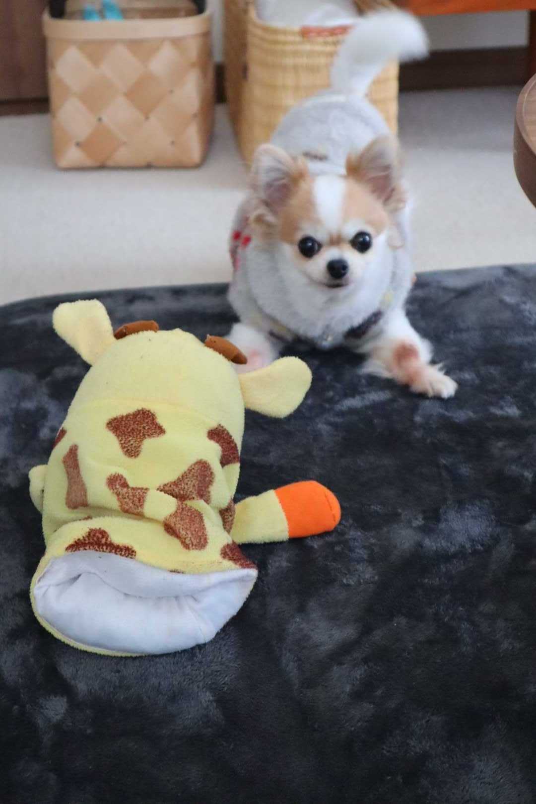 こんにちは今日もこのブログを読んでくださって、ありがとうございます。もう、ほんっと寒い最強最長寒波(早口言葉かっ)、早く過ぎ去っておくれ。去年の今頃は、お腹ピーピーだったおとちゃんですが、この冬は今のところめちゃくちゃ元気ですすぐお腹がゆるくなるので、この寒さがマシになるまでは、お散歩も控えております。運動不足が少し心配でしたが・・・「おかーしゃん、なげてっ!!」朝イチ🦒さんを投げて、ダッシュで拾いに行くを繰り返すこと数回・・・まだやるの??「ラストいっぽんっ!!」何の訓練よ。。🦒さんダッシュが終わってヘコヘコで〆るルーティン。笑「フンッフンッ!!」運動不足・・・・大丈夫そ。笑お腹キュルキュル対策でロンパースを着せていたハズが、洗濯物を取り入れてリビングに戻ってきたら・・・「エッヘン<(`^´)>」えぇ!!!うそやろ見てよ、この得意げな顔。笑何で脱いだ!?「なんか、さむい・・・」・・・・でしょうねぇ(-_-;)それにしてもキレーーーーに脱いだな。この後すぐ着せられましたとさ。「またぬいだろか?」やめて。またお腹ピーピーなるで。お次は、わが家でよく見る冬の光景。散々遊んだ後にコテンと寝ちゃう、これがまたカワイイのよ( ´艸`)意味もなくお部屋をウロウロするおとちゃんを撮影する暇な飼い主。笑「なにしようかなー」どうした?「なんかさー、しせん感じるのよ。。」うん、そうだね。笑🍊「じーーーーーー👀」なんてな。笑最後は、夜寝る前のおとちゃんおとちゃん、そろそろネンネするよ~。「まだねーへん」・・・え、なんでなんなんかさ、下に🦒さんいるよね?まだ遊ぶの?「ねるまえのひと運動よ」朝から晩まであなた(-_-;)🦒さん、いつもお疲れ様です・・・。ホントにもう寝るよー、おとちゃん(2回目)。キッチンに夫がいるので、何かもらえると期待して見つめています。笑 ↓「まだなのよ、おとーさんなにかたべるかも」あなた、寝る前のうまうまさっき食べてたじゃないの。夫に「何もないよー」と言われて、やっと寝る気になったようです。「もうねるー」(やっとか)はい、じゃあ行きましょうか。まぁね、ひょいと抱っこして連れて行けばいいのだけど、これもまた飼い主としては楽しいのです( ´艸`)こんな感じで外は寒いけど、お家の中でぬくぬくと元気に過ごしております#わんこのいる暮らし#保護犬との暮らし#チワワ本日はポイントバックデー!これはお得!!ストアオープン記念につき、3,000円以上で1,000円オフクーポンが使えます♪(~1/31迄) HAPPY VALENTINE #バレンタイン#バレンタインチョコではでは~最後までお付き合いいただき、ありがとうございました。こちらもよろしくお願いします。 ↓ ↓ 随時更新しています! ↓ ↓ブログランキングに参加しています。お手数ですが、こちらをポチっと応援クリックしてくださるととっても励みになります♡ ↓ ↓にほんブログ村