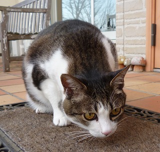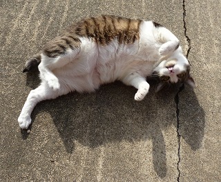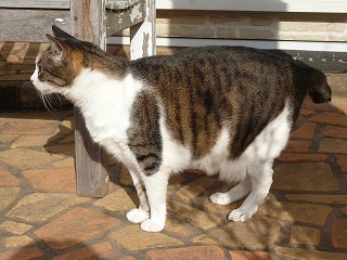 今日は風があって曇り天気です気温8度で肌寒い日になりました晴れてないので花粉はマシですがモモ、朝に出ました折角出たのに少し移動しただけでしたサツキの陰で隠れているつもりでしょうか丸見えです今日は肌寒く10分で家に帰りました家の中は日が当たってポカポカです朝、シロが来てましたご飯を食べていた様です直ぐに車の下に隠れてしまいましたシロの後ろ姿もパチリお腹がいっぱいになって、花壇でお昼寝してました