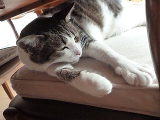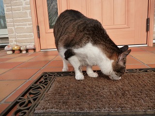 今朝の気温2度、昼間は8度でした午前中晴れてましたので、モモは久しぶりに外に出ましたゴロンゴロンしたり、ブラッシング出来ました朝、外のマットを嗅いでましたシロがよく座って待っていますいつもシロの居る方を向いてました10分程ですが外に出て、眠くなりました午後も爆睡でした夜、頭隠してお尻隠さずでした今も私の横の椅子で爆睡です明日は最低気温0度、最高気温10度です朝は冷え込みそうですが、昼間は暖かそうです
