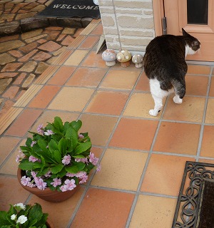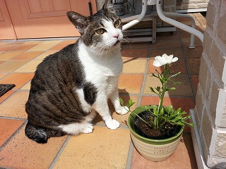 昨日も今日も最高気温25度でした6月下旬並みの気温だそうです花壇や鉢の土はカラカラで、朝晩2回の水遣りです朝、散歩に出ました陰のベンチでまったり気持ちの良い朝でしたしばらく出ていると、外は暑かったようです今日はキャリーケースで、お昼寝でした今朝はシロがご飯を待ってました箱の中に入れたかったのですが、早く食べたかったらしく猫パンチが出たので置いておきました夕方も来たので、ご飯をあげましたフラフラ何処かへ行きました又、明日ねハナミズキ、咲き始めてましたずっと雨でしたので直ぐに気づきませんでした出遅れているもう1本のハナミズキ、蕾はこんな不思議な形ですシャガ、あちこちに咲いていますジャーマンアイリス、今日は紫の色が薄っすら見えてました初めてですので楽しみですクレマチス、開き始めました明日は咲くでしょうか蓼科で買ったパープルのフロックス、ストックの赤紫良い色ですデージーも長く咲いていますハゴロモジャスミン、上の方は咲き始めていますアレナリアモンタナ、冬を越して咲き始めました