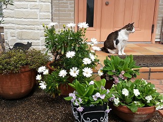 今日の最高気温26度風があって暑さは感じ無かったですブラウス1枚で過ごせましたモモは外に出ましたが、日差しが強かったです朝、外に出て監視中マットで座り込んでしまいました20分後、アジサイを確認中今年初ソファです熱心に毛繕いしてました夜、ぴったり足ピトしてました足をクロスに玄関シューズクロークの上に猫雑貨を飾っています前に習ったプリザーブドフラワーも2つ一緒に飾りましたコーナーの花壇ですオステオスペルマムがよく咲いています赤いバラが咲き始めましたキンギョソウ、チロリアンデージー、スィートアリッサム イベリスが咲いています