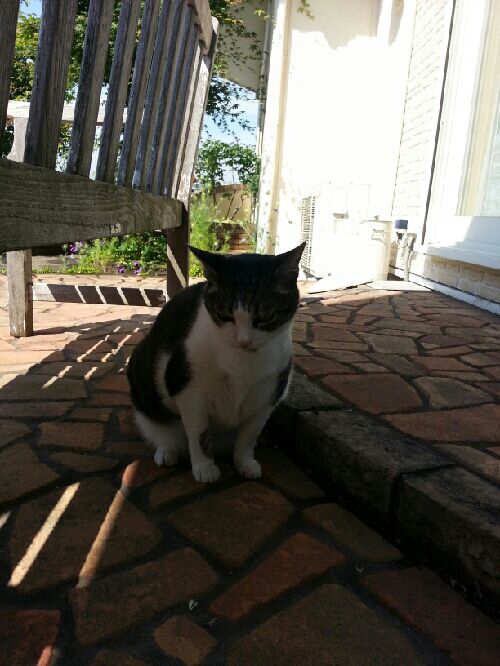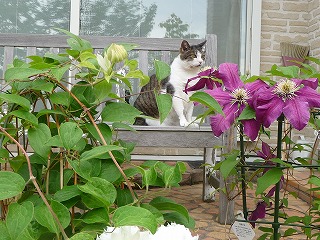今日の最高気温27度朝は曇ってましたが、午後から暑くなりました夜、先ほどから雨が降ってきたようです昼間外に出ると、たくさん庭仕事がありますモモも一緒に付き合ってくれました午前20分、午後30分出てましたクレマチスとモモをパチリ家に入りたそうでした午後、タンポポの綿毛のある場所に連れて来ました午後は日差しが強くなってきましたベンチの下に居ます午後、次女が遊びに来ましたモモ、グルグル喉を鳴らしてご機嫌でした夕方は外猫の茶猫がこそこそっとご飯を食べに来てました先日、左からフレンチラベンダー、フロックス、白のブラキカム2つ、キャットミントを買って来ました蔓性のフロックスだそうで、高い場所に置いてありますパープルのお花が咲いていますバラ「マチルダ」、ピンクがほんのり付いていますバラ「マダム・アルディ」、中心にグリーンアイがあります咲き始めは淡いピンクで、咲き進むと白色になりますカップ咲きが、可愛いです