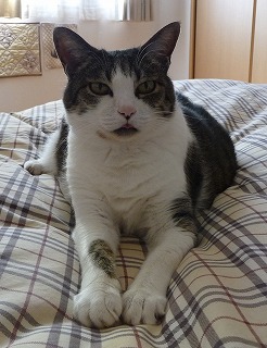 朝は曇ってましたが、だんだん晴れてきました風も強く吹いて日差しも強かったですモモ、外に出て気持ちよさそうでした家に入ると、ひんやりしているのかお布団の上で寝てしまいました後から見に行くと、お布団に潜ってました外ですごい格好のモモこんな格好もおすましのモモお布団の上でお昼寝でした午後、お布団に潜って寝てましたが、足が見えてました触ったら引っ込めましたジャーマンアイリス、2本目が咲きました優しい色が、素敵ですクレマチス、ベル型が咲いています宿根バーベナ「ピンクパフェ」、鉢から地植えに替えました花壇、ニゲラが咲き始めましたあちこちに種が飛んで咲いていますオルラヤも種が零れて、あちこちに咲いてますラムズイヤー、初めてお花が咲きそうですタイムは終わりましたが、ブルーデージーはよく咲いてきて見頃です