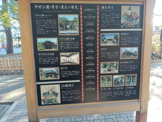 豊臣兄弟と縁のある豊臣家一門衆の石碑も見つけました。まずこちらは中村公園内にあった小出秀政(→→→こちら)邸址の石碑です。小出秀政は安土桃山時代から江戸時代初期の大名。正室が秀吉の母大政所の妹・栄松院だったことで豊臣家の一門衆になります。秀吉にとっては年下の叔父(叔母婿)で、秀吉の出世に伴って大名になった人物です。また、傳役或いは用人として片桐且元と共に豊臣秀頼に仕えたましたが、関ヶ原の合戦の4年後の慶長9年(1604年)に亡くなりました。こちらは常泉寺の横にあった木下長嘯子(きのした ちょうしょうし)邸址の石碑です。木下長嘯子は歌人としての名前で、大名としては木下勝俊(→→→こちら)という名前で知られています。木下勝俊の父である木下家定は豊臣秀吉の正室高台院(北政所、おね)の父である杉原定利の子であるため、勝俊は高台院の甥にあたります。幼少より豊臣秀吉に仕え、一門衆の1人として厚遇されていたそうです。関ヶ原の合戦の時、伏見城にいたにもかかわらず、徳川方の東軍として戦わず退去したことから、家康から除封の処分を受けたのですが、伯母である高台院の庇護を受けて父、木下家定の所領を相続することができました。しかし、この遺領を巡って弟の木下利房と争っため、また所領没収とされることになり、以後、京の東山に隠棲し長嘯子と号して和歌を詠んで暮らしたそうです。ご両人とも、豊臣秀吉の親戚となり色々と苦労した人生を送られたんですね。そして、ここ中村の地には有名な武将である加藤清正の生誕地でもあったようです。中村公園の東隣にあるこちらの妙行寺(→→→こちら)が清正の生誕地と伝えられています。清正の幼名を虎之助といい、永禄5年(1562年)この地に生まれたといわれています。天正(1573年~)のはじめ秀吉に仕え、数々の武功を建てた。とくに賤ヶ岳の七本槍は有名です。そして、のちに肥後国(熊本県)54万石の領主となりました。妙行寺の山号は正悦山。日蓮宗のお寺です。清正公は熱心な法華経の信者であったそうです。慶長15年(1610年)に名古屋城築城の際、その余材を使って妙行寺を自分の生誕地に移築・再建したと伝えられています。幟も大きく高くて、加藤清正の人望の高さに比例しているんでしょうか。【つづく】人気ブログランキング豊臣兄弟の故郷を訪ねて(その4) 豊臣家一門衆と加藤清正