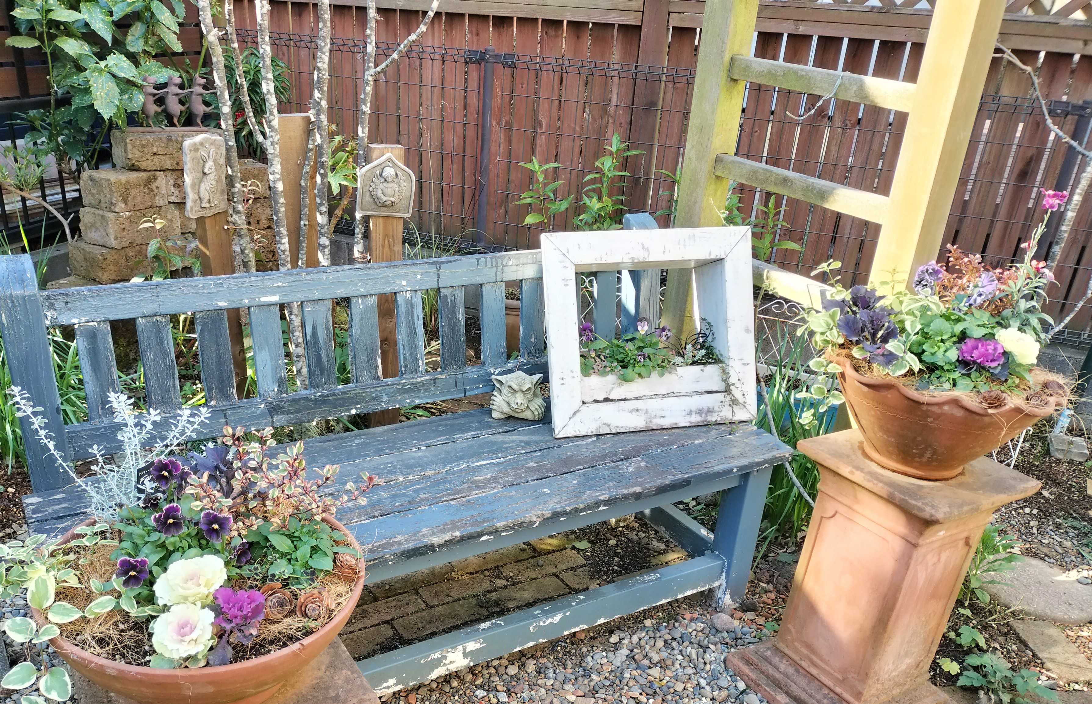 1年で庭が1番がらんとする季節です 木々は葉を落とし咲く花も少ないです 寄せ植えなどを置いて 少しでも花や葉色を加えたいと思ってますが 寄せ植えの鉢を置くのもためらうほど 冷え込みが厳しいです そんな冷え込みが厳しく 花や緑の少ない時期は 冬庭のアクセントになるよう 吊り鉢に花などを植えこんで 飾るようにしています こちらは木製の鉢ですが アルミで作ったS字フックを使えば 吊るして飾れます 地面から1メートル位上の場所は 日当たりがよかったり 霜の影響を受けにくかったりするので 冬庭の植物たちにはよい場所です カゴバスケットで吊るしタイプのものを 見つけ今季購入し そこに寄せ植えをしてみました 日当たりのよくない駐車場側でも 吊るして飾ると 少し条件がよくなるようで ビオラがたくさん咲いています 日陰の小径沿いは 冬場は特に日当たりは悪くなります そんな日陰の場所には ヒューケラ アイビーなどの吊り鉢を作り 飾っていますツボサンゴ(ヒューケラ)‘クリーム ブリュレ’ 日陰のフェンスには雑貨もプラス【MAX15%OFF決算クーポン】ガーデニング雑貨 プレート オーナメント オブジェ 置物 飾り 庭 ベランダ 玄関 ガーデン雑貨 ガーデニング 雑貨 アンティーク ナチュラル おしゃれ かわいい SIGNPLATE ボヌールパリプレートBL YZ-UN1293-60 多肉 秀麗も日陰でも大丈夫です こちらは多肉・朧月ですが 寒さにも日陰にもなかなか強いです ヒメシャラの木に吊るしています 5月にはバラで覆われるアーチも 今は寂しい場所になっているので ビオラなどの吊り鉢を飾っています 種まきっ子ビオラがぽつりぽつりと 吊り鉢の中で咲いています まだ植えこんでいない苗なども 吊るしたカゴに入れています 少し寒さに慣れてきたローダンセマムも 吊るして外に飾るようになりました