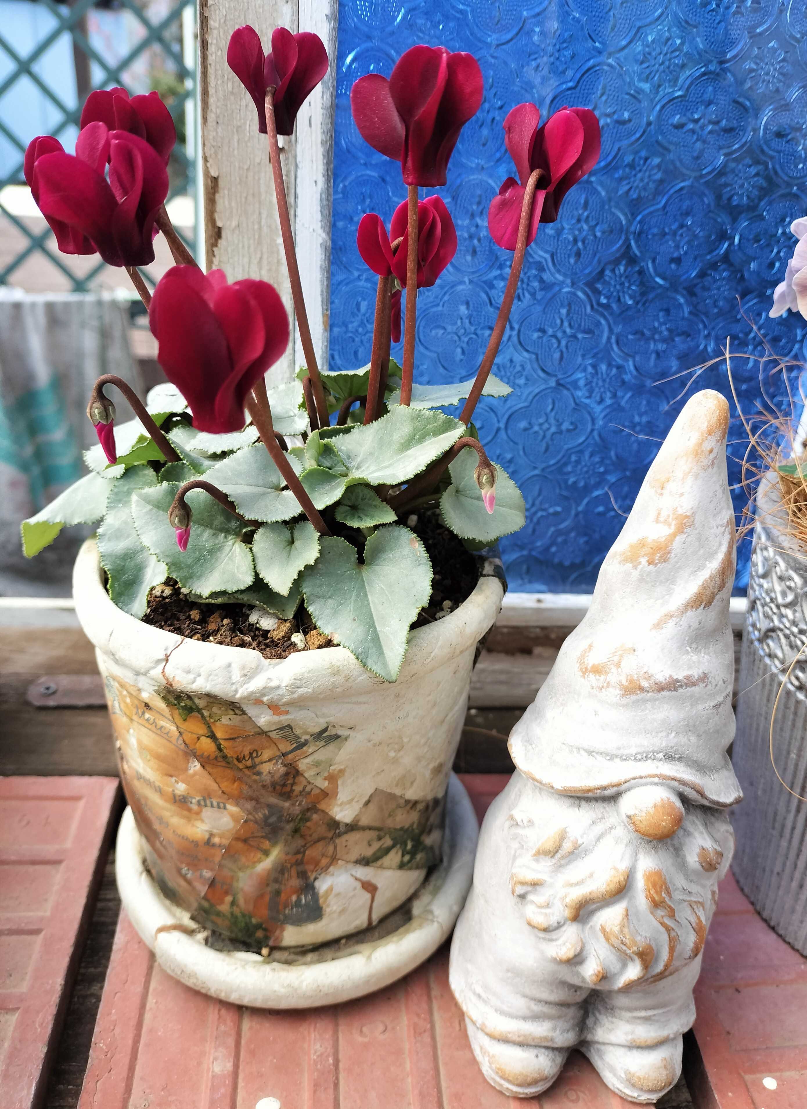 水仙が今にも咲きそうです 冬庭に以前から気になっていた 原種シクラメンを植えたくなりました 先日の趣味の園芸を見ていて やっぱり欲しいと園芸コーナーに 向かいました 購入したのは 原種シクラメン・ヘデリフォリウム 開花期は9月〜11月となっています 耐寒性多年草です 早速 カシワバアジサイの下に植え込みました 開花期はすでに終わってますが 葉がステキな品種です原種シクラメン ヘデリフォリウム ポット苗 もう一つ購入したのは 原種シクラメン・コーム山野草の苗/原種シクラメン:コウム・シルバーリーフ赤花2.5号ポット 開花期は12月〜4月 花芽が見えているので うまくいけば今シーズン 花が見られるかもしれません こちらもカシワバアジサイの根元に 植え付けました うまく環境が合えば長寿の宿根草と 説明がありました うちの庭で長く生き続けて欲しいです さてお目当ての原種シクラメンを購入し 今度は予定外のかごバスケットが目に止まり 購入しました かごバスケットが欲しいと思っていましたが こちらは吊り下げタイプ 新作とのことです 吊り下げタイプも冬には使いやすいかなと さんざん迷って購入 種まきっ子苗と 庭にあるもので 寄せ植えしました 斜めになっているので 実際植え付けてみたら難しかったです 吊り下げてみました 右上が何か足りないと思い クローバー・ティントワインを追加 植え付けたばかりで 葉などが下を向いてしまってます ただこのまま吊り下げて育てると 植物は偉いので ちゃんと上を向いて育ってくれます 生育途中の苗を植えると 植え込みしたばかりは形にならなくても 生育するに従い うまくまとまってくれるので 助けられています 12月も中旬だというのに 植え付けや寄せ植えがまだ楽しめてます