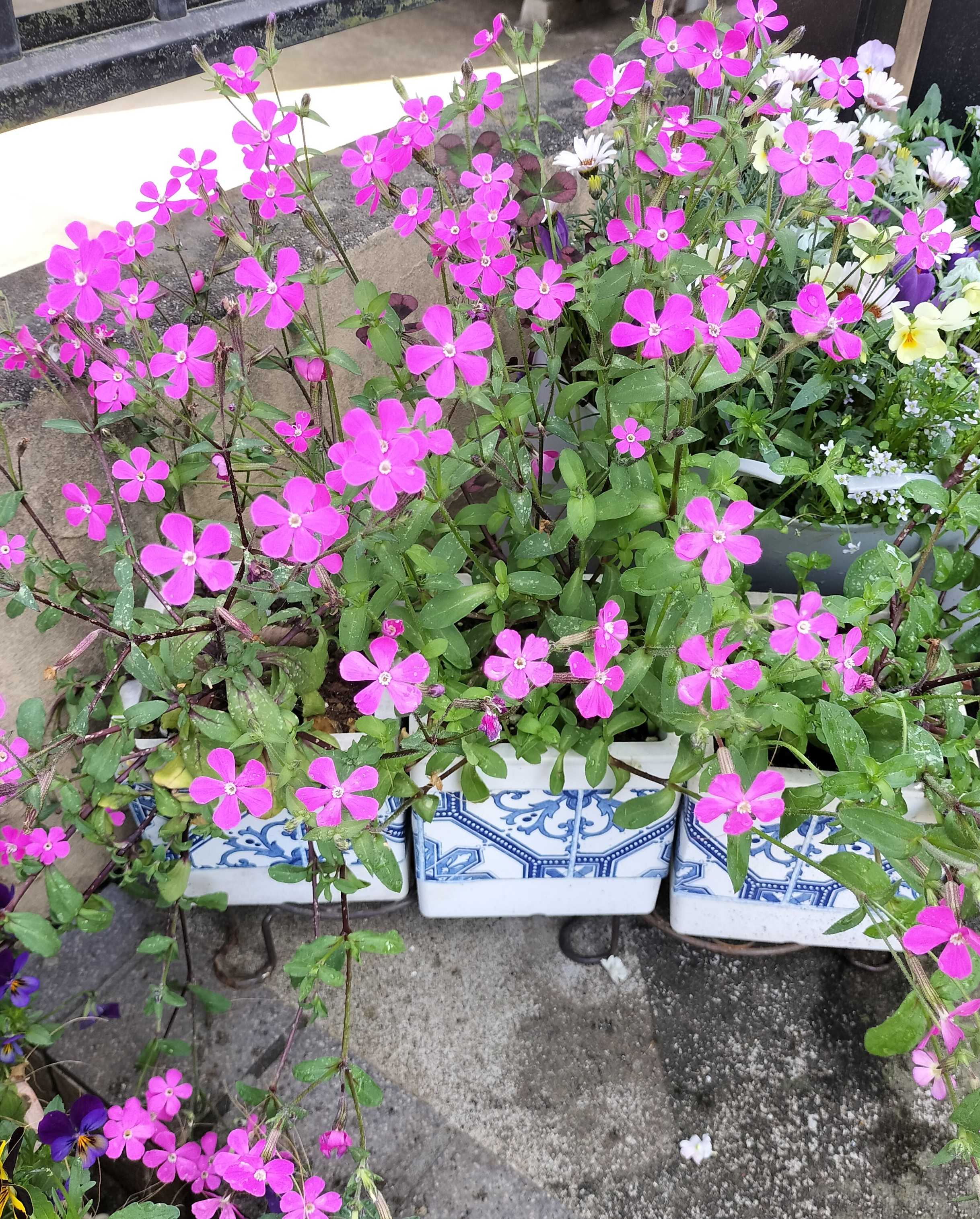 シレネピンクパンサーと出会ったのは 2019年10月 あれから6年 今年2〜3月にも シレネピンクパンサーは たくさん咲いてくれました 2019年に ブロ友さんから ツルコザクラという名前で タネをたくさん送っていただきました そのころは見たことのない花で 冬に鮮やかな花色で咲くので 近所の方にも珍しがられました 2020年2月頃園芸コーナーで ツルコザクラと同じものが シレネピンクパンサーとして 販売されているのを発見 シレネカロリニアナと 表記されることもあります その翌年位から シレネピンクパンサーは たくさん販売されるようになりました シレネピンクパンサーは 地植えでも鉢植えでも吊り鉢でも どんな楽しみ方も出来る花です 何よりうれしいのは 一度苗を購入すれば 翌年からは採種やこぼれ種から 簡単に育てられることです 開花期間は 4〜6月と紹介されることが多いですが 地域によっては12月位から 開花することもあります 大阪に住むブロ友さんのお庭では もう開花しているようです 始めは採種して苗を育てていましたが 今ではこぼれ種発芽の苗をすくって 鉢植えにしたり そのまま地植えで育てたりすることが ほとんどです 見慣れていないと雑草と間違い 抜いてしまいそうですが こぼれ種発芽のシレネピンクパンサーです こんなこぼれ種発芽の苗をすくい取り 苗として置いて置きました このこぼれ種発芽の苗を 100均のフェルトの小物入れを鉢として使い 植え込みました 植え込み終了 小さな苗はふた苗植え込みましたが シレネピンクパンサーは ひと苗でかなり大きく育つので ひと苗で充分かもしれません フェルトの小物入れに植え込んだ シレネピンクパンサーを フェンス沿いに吊り下げました 下の写真は今年の2月頃の様子です うちの地域ではたいてい2月頃には 次々と花を咲かせ始め 3月位には溢れんばかりに たわわに花を咲かせます 花の少ない時期に 鮮やかなピンクの花は 元気をもらえる気がします 今は濃いピンクの他に優しいピンク色や 白い花色も販売されていますシレネ カロリニアナ(ピンクパンサー) ライトピンク 9cmポット 3号 シレネピンクパンサーは 早春に活躍してくれる育てやすい花です