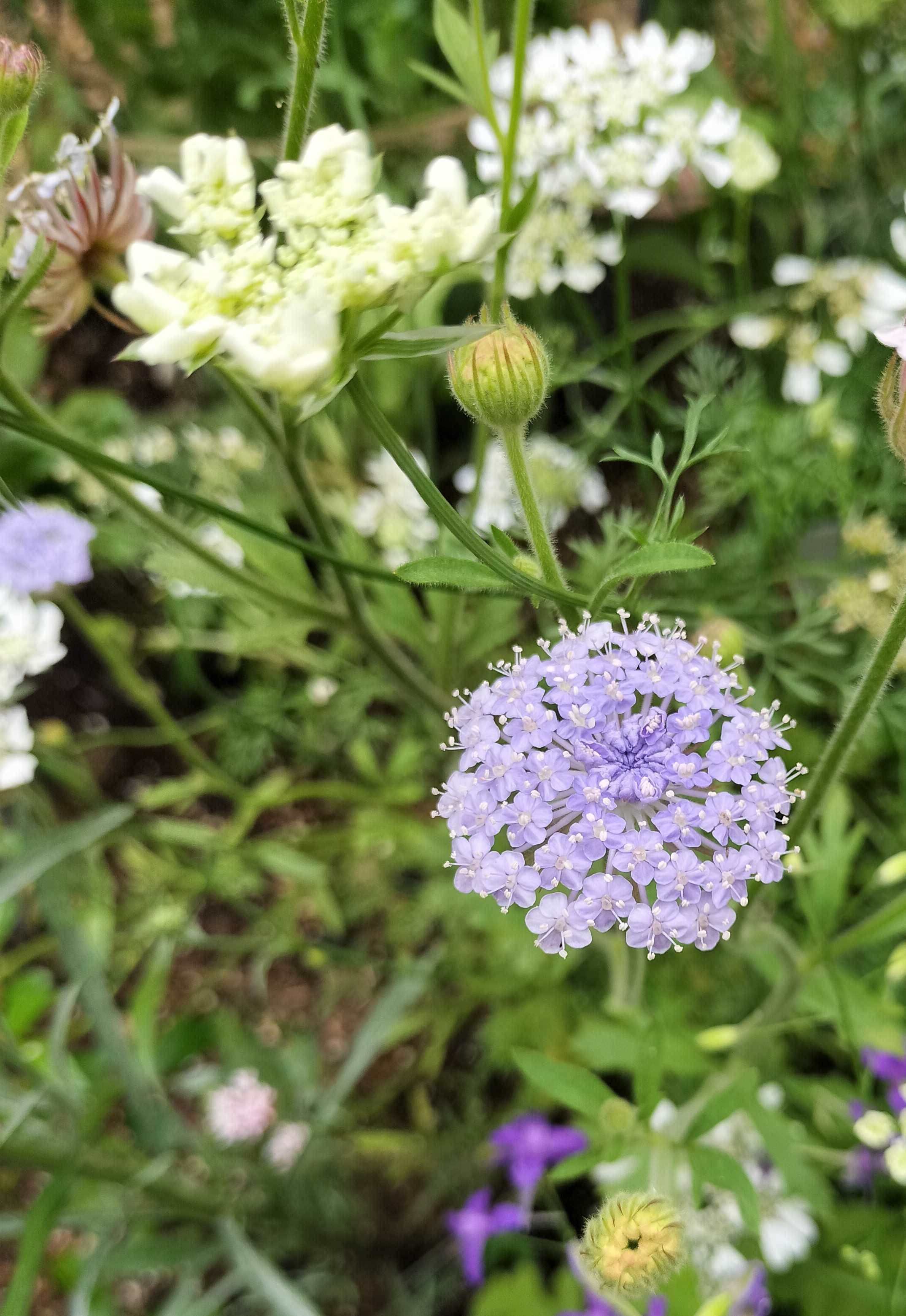 クリスマスイブは1日冷たい雨の振り続く 寒い1日でした これから最低気温が氷点下になる日も 増えそうです 0度以上なら大丈夫という微妙に寒さに弱い 植物を育てています ブルーレースフラワーの苗です ブルーレースフラワーの苗は 4連結のトレーに植えていて 上の写真は二つのトレーで8苗分です ブルーレースフラワーは セリ科トラキメネ属の一年中 草丈 60〜100センチ 開花 5〜6月(春撒きの場合)草花の苗/ブルーレースフラワー:ブルー3-3.5号ポット 2株セット 切り花としては1年中流通しています 苗として出回ることはあまり見かけません タネの販売はよく見かけます【レースフラワー】ディディスカス【サカタのタネ】(1ml)【半耐寒性1年草】[春まき][秋まき]905307 春撒きも出来るので 春撒きすれば冬越しの心配もなく楽ですが 開花は7〜9月になってしまいます 高温多湿にも弱いので 7〜8月の開花では花を楽しめなさそうです 近年の猛暑では 育てにくい花です 昨年はセトノブルーという品種を育てました 例年より苗の育ちが悪かったです種 ディディスカス・セトノ ブルー 1袋【タキイ種苗公式】秋まき 今シーズンは例年育てているタネを 播きました 今のところかなり順調で たくさんの苗が育っています 簡易ビニールハウスの中で 20苗以上は育っています 暑さにも寒さにもやや弱いので 少し手がかかります あまり過保護にしても脆弱な苗になるので 今のところ簡易ビニールハウス内でも 明けっ放しにして 高温多湿にはならないようにしています こぼれ種発芽から育つもの 植えっぱなしでもよく育つものもあれば レースフラワーのように 少し手がかかる植物もあります 手がかかるものをたくさん育てるのは イヤですが 数種類なら何とかやれそうです この写真はヤグルマギクなどが咲いた時の 様子ですが 初夏にブルーの花をたくさん育てたい願望が あります タネで育てると たくさんの苗を育てることが出来ます 簡易ビニールハウスの中で育てるなど 少しの手間がかかっても 初夏のブルーだらけの庭になることを 想像すると頑張れます