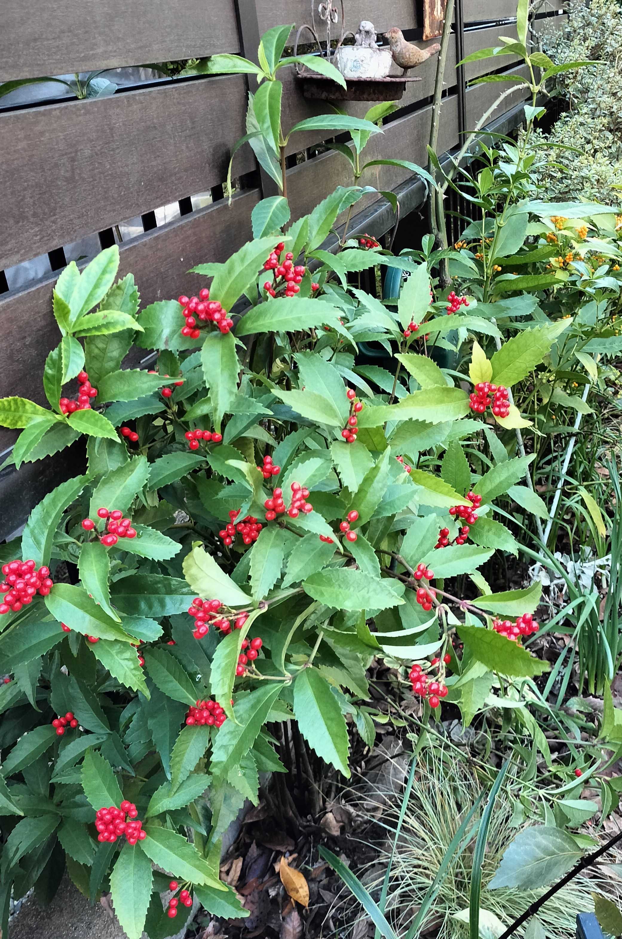 少しずつですが 種まきっ子ビオラも新しく開花しています 開花しているビオラのほとんどが このタイプですが やや違う花色も咲き出しています こちらはちょっと違う花色 こちらも新しく咲き出したビオラ こちらは小さな木箱に植えていたビオラが 咲き出したものです そんなに代わり映えのないビオラですが 少し顔が違うかなと 毎日のぞき込んでいます さて花色の少なくなる冬庭で 赤い花や赤い実は目を引きます こちらはスキミア【単品販売】スキミア ルベラ(ミヤマシキミ)高さ約15cm 9cm(3号)ポット入り 常緑 おしゃれな庭に 人気の 植木 庭木 ガーデンプランツ ガーデニング 植木組合より産地直送 植木生産組合直営 スキミアは ミカン科ミヤマシキミ属の常緑低木 冬から早春まで 赤や緑の実やつぼみが彩りとして 楽しめる花木です 11月頃に花芽ができ始め プチプチとしたかわいいつぼみをつけます 冬はつぼみのまま変わらない姿を保つので クリスマスやお正月の飾りとして 赤いつぼみが効果的です クリスマスというと シクラメンやポインセチアが流通しますが 近年はスキミアの人気が高まっているようです 4年ほど前に 斑入りのスキミアを1000円ほどで購入して 今に至りますが 今は値段も上がっているようです【ケース販売:15入】 スキミア(ペローサ) 3.5号 プラスチック鉢 15鉢 ミヤマシキミ ミカン Skimmia japonica 万両の赤い実も今の時期美しいし かわいいです 千両の赤い実は やはりお正月に活躍してくれます 気温が下がり 赤い実が色濃くなってきています 早くから赤い実をつけていたアロニアの実も まだツヤツヤの赤いままです パイナップルセージも 1ヶ月位ずっと赤い花を咲かせ続けていますパイナップルセージ ‘ゴールデン デリシャス’ 冬庭に彩りを与えてくれる 赤い花や赤い実は 冬庭になくてはならないものに 感じてしまいます 低い気温の中で咲くので 花もつぼみも実も長く楽しめるのが うれしいです